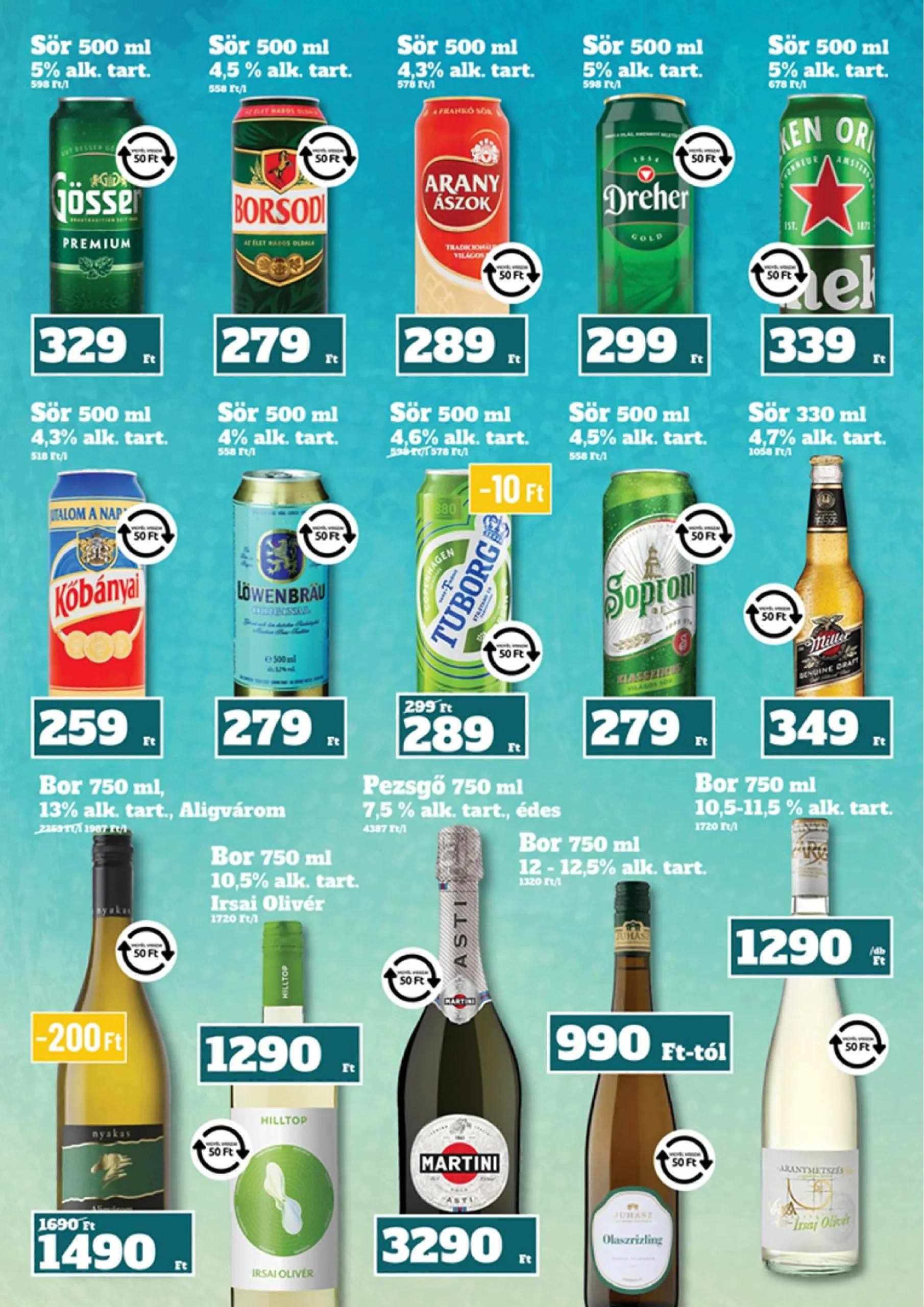 Sör (500 ml, 4% alk. tart.)