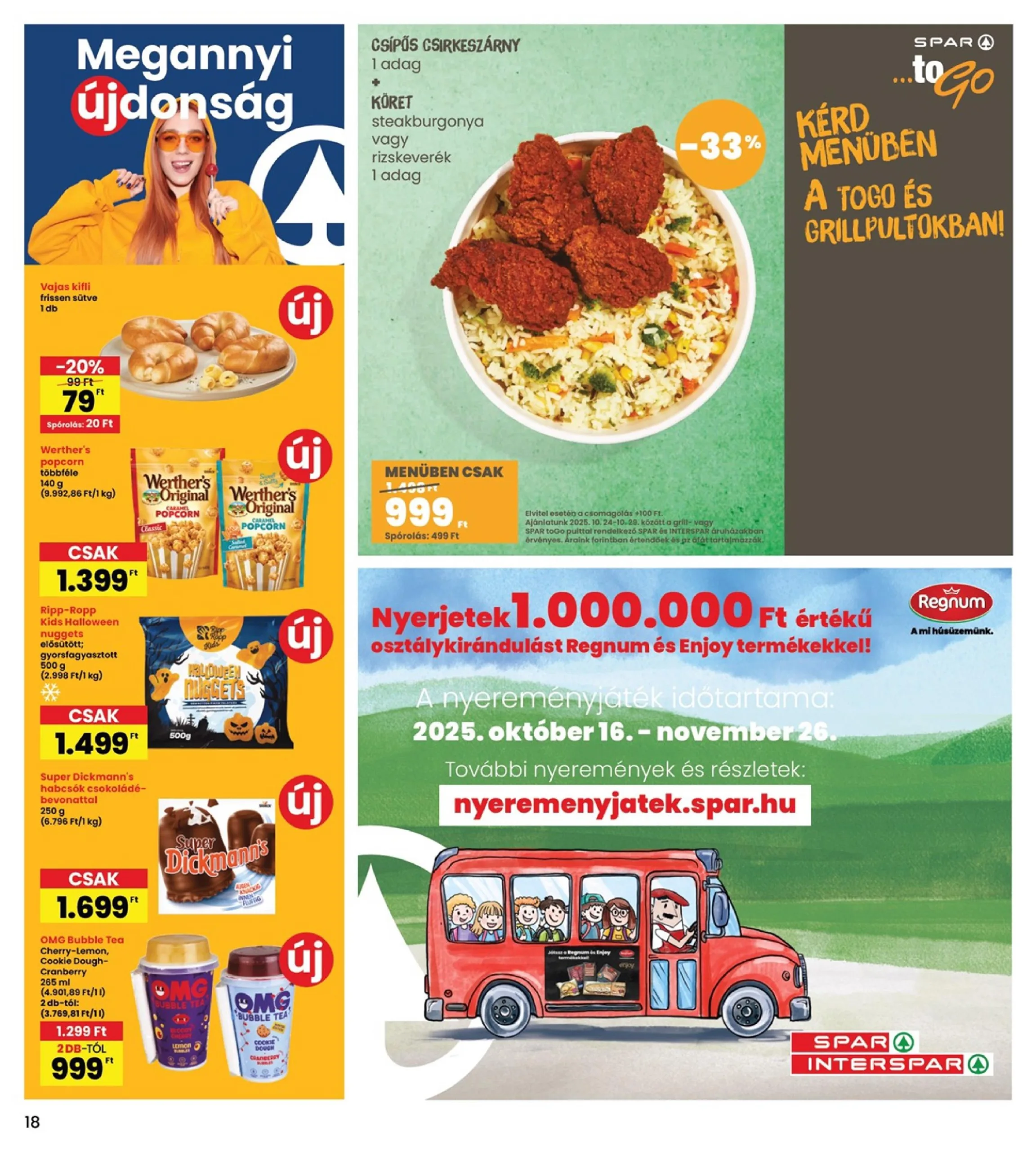 Nyerjetek 1.000.000 Ft értékű új osztálykirándulást Regnum és Enjoy termékekkel! A nyereményjáték időtartama: 2025. október 16.- november 26. További nyeremények és részletek: nyeremenyjatek.spar.hu