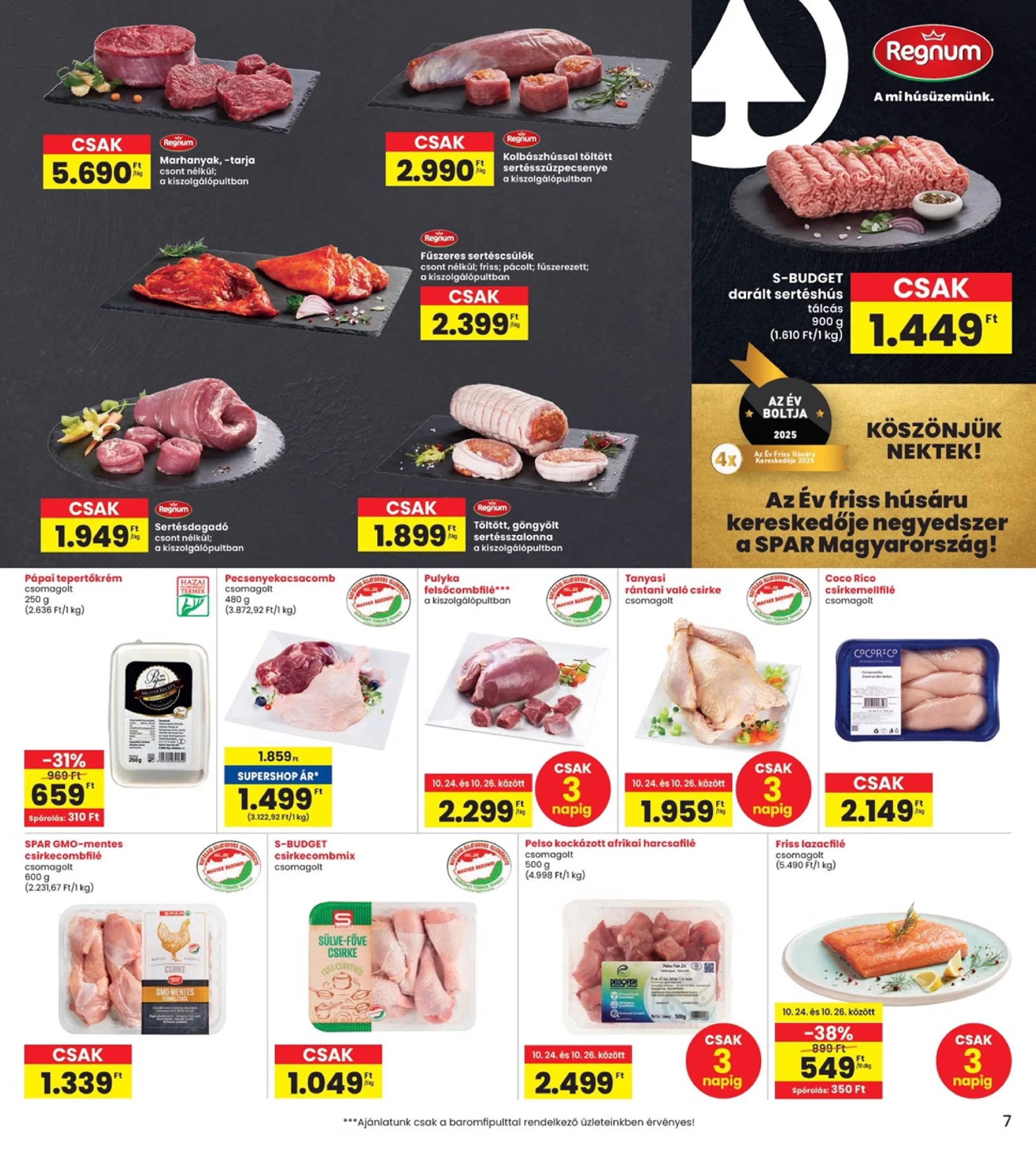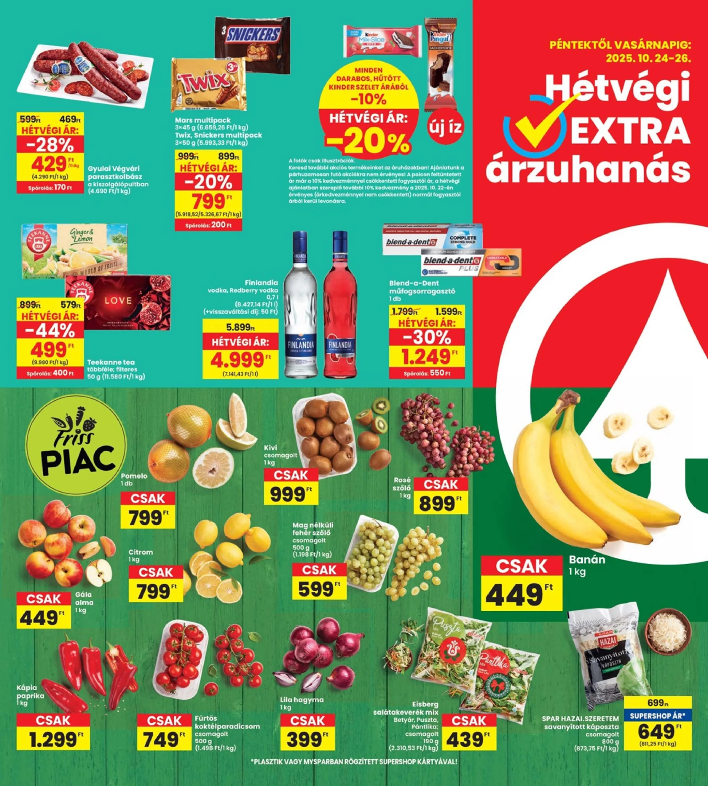 Elvitel esetén a csomagolás +100 Ft. Ajánlatunk 2025. 10. 24-10. 29. között a grill- vagy SPAR toGo pulttal rendelkező SPAR és INTERSPAR áruházakban érvényes. Áraink forintban értendőek és az áfát tartalmazzák.