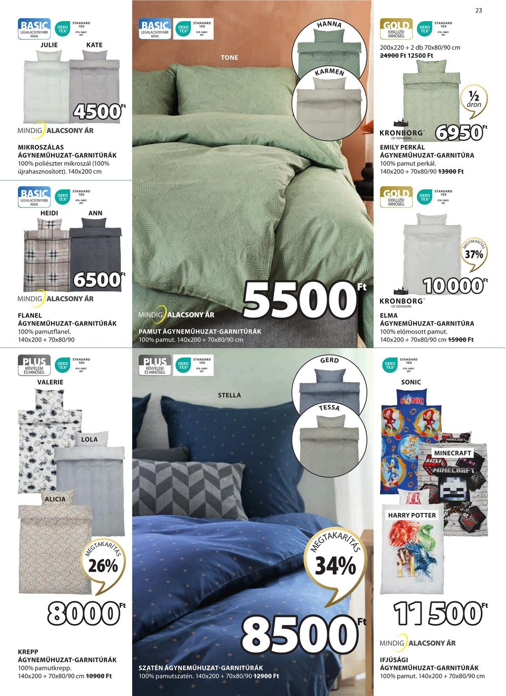 BASIC LEGALACSONYABB ARAK JULIE OEKO TEX STANDARD KATE BASIC DEKO LEGALACSONYABB ARAK TEX 4500″ MINDIG ALACSONY ÁR MIKROSZÁLAS ÁGYNEMŰHUZAT-GARNITÚRÁK 100% poliészter mikroszál (100% újrahasznosított). 140×200 cm BASIC LEGALACSONYABB ARAK HEIDI OEKO TEX STANDARD ANN STANDARD 100 23 STANDARD 100 TONE HANNA KARMEN GOLD DEKO EXKLUZIV MINŐSÉG TEX 200×220 + 2 db 70×80/90 cm 24900 Ft 12500 Ft 6500 MINDIG ALACSONY ÁR FLANEL ÁGYNEMŰHUZAT-GARNITÚRÁK 100% pamutflanel. 140×200 + 70×80/90 PLUS ОЕКО TEX STANDARD 100 KÉNYELEM ÉS MINOSEG VALERIE MINDIG ALACSONY AR 5500 Ft PAMUT ÁGYNEMŰHUZAT-GARNITÚRÁK 100% pamut. 140×200 + 70×80/90 cm PLUS KENYELEM ÉS MINŐSÉG OEKO TEX STANDARD 100 GERD ALICIA LOLA 26% 8000 STELLA TESSA KRONBORG OF DENMARK EMILY PERKÁL 1/2 áron 6950″ ÁGYNEMŰHUZAT-GARNITÚRA 100% pamut perkál. 140×200 + 70×80/90 13900 Ft GOLD DEKO STANDARD 100 EXKLUZÍV MINOSEG TEX® REGTAKARIZA 37% 10000″ KRONBORG OF DENMARK ELMA ÁGYNEMŰHUZAT-GARNITÚRA 100% előmosott pamut. 140×200 + 70×80/90 cm 15900 Ft OEKO TEX STANDARD 100 SONIC MINECRAFT INT MINECRAFT EGTAKARITA 34% 8500 Ft HARRY POTTER 11500* MINDIG ALACSONY ÁR IFJÚSÁGI ÁGYNEMŰHUZAT-GARNITÚRÁK 100% pamut. 140×200 + 70×80/90 cm KREPP ÁGYNEMŰHUZAT-GARNITÚRÁK 100% pamutkrepp. 140×200 + 70×80/90 cm 10900 Ft SZATÉN ÁGYNEMŰHUZAT-GARNITÚRÁK 100% pamutszatén. 140×200 + 70×80/90 12900 Ft