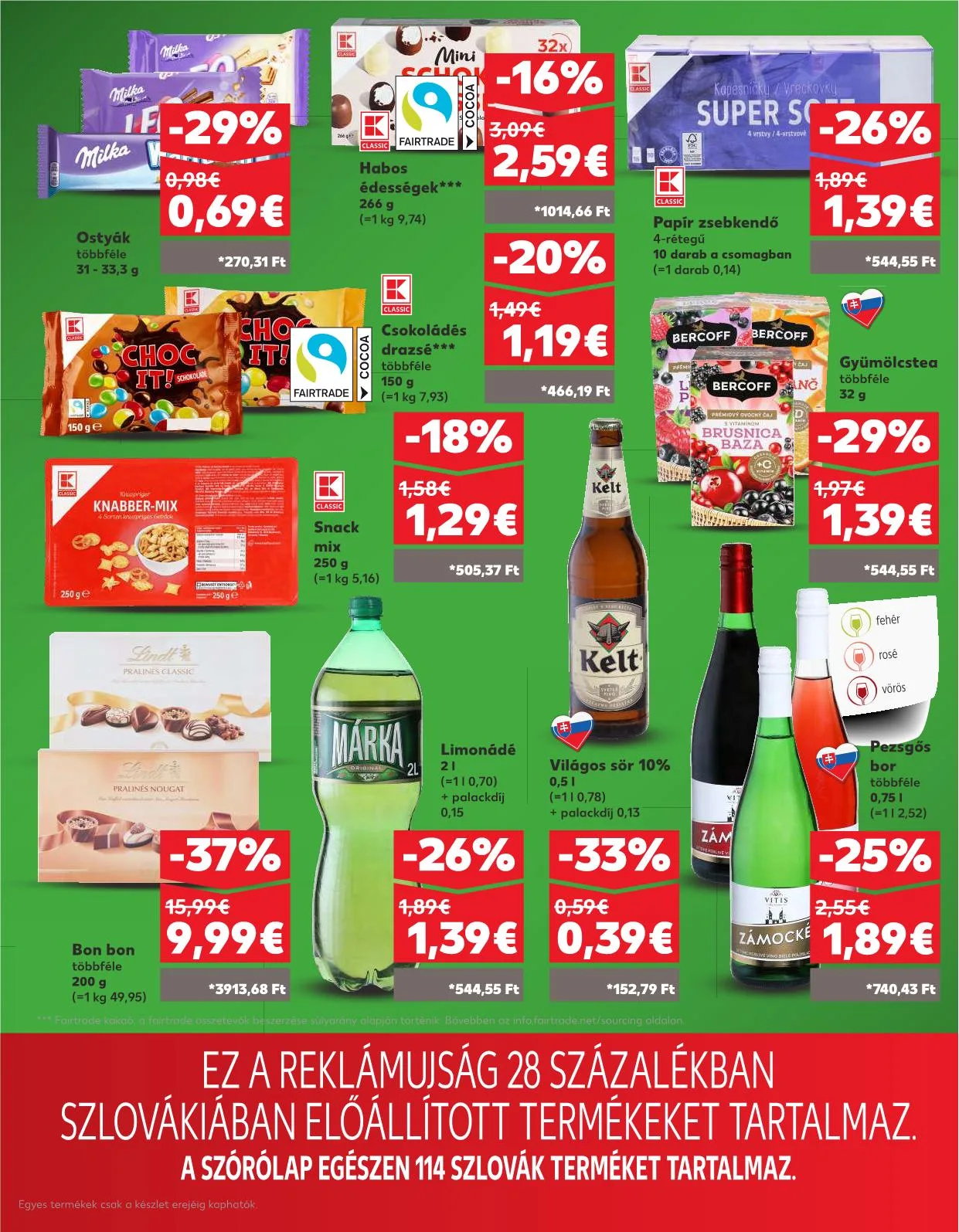 Ez a reklámújság 28%-ban Szlovákiában előállított termékeket tartalmaz. A szórólap egészén 114 szlovák terméket tartalmaz. Egyes termékek csak a készlet erejéig kaphatók.