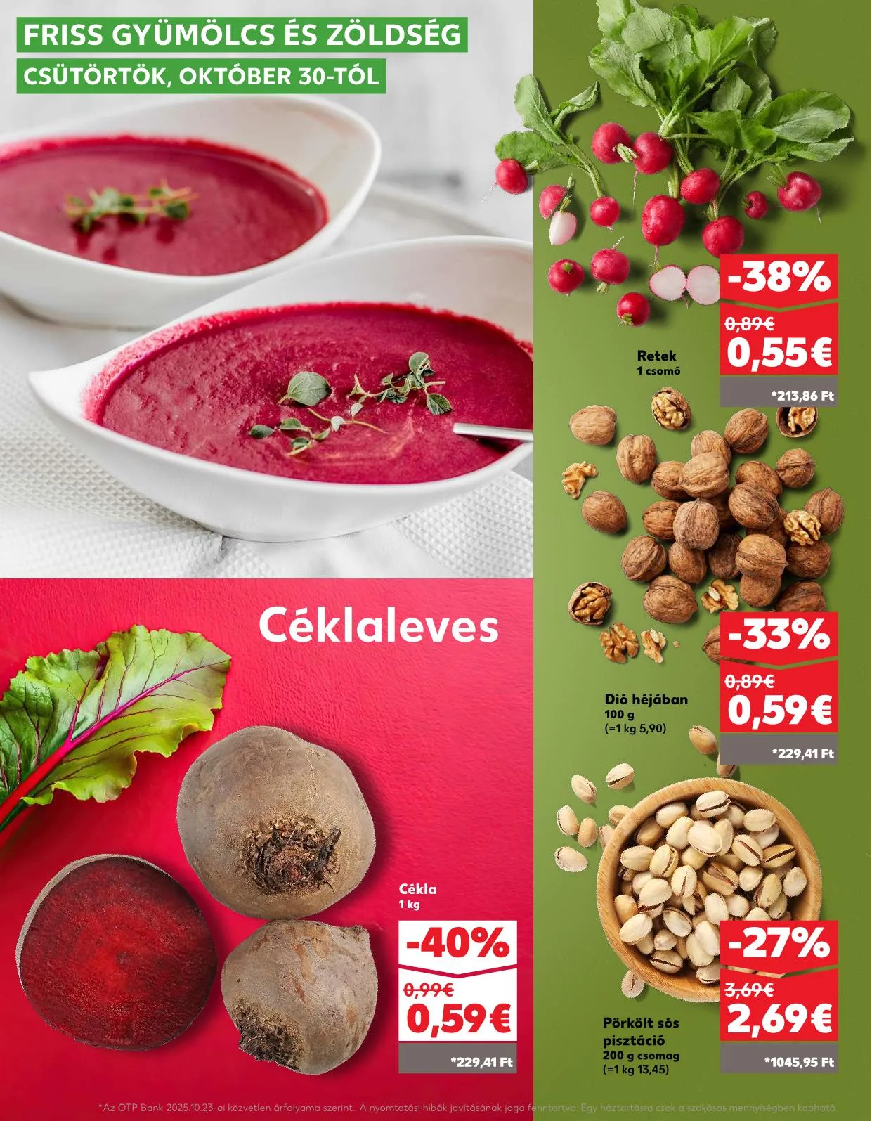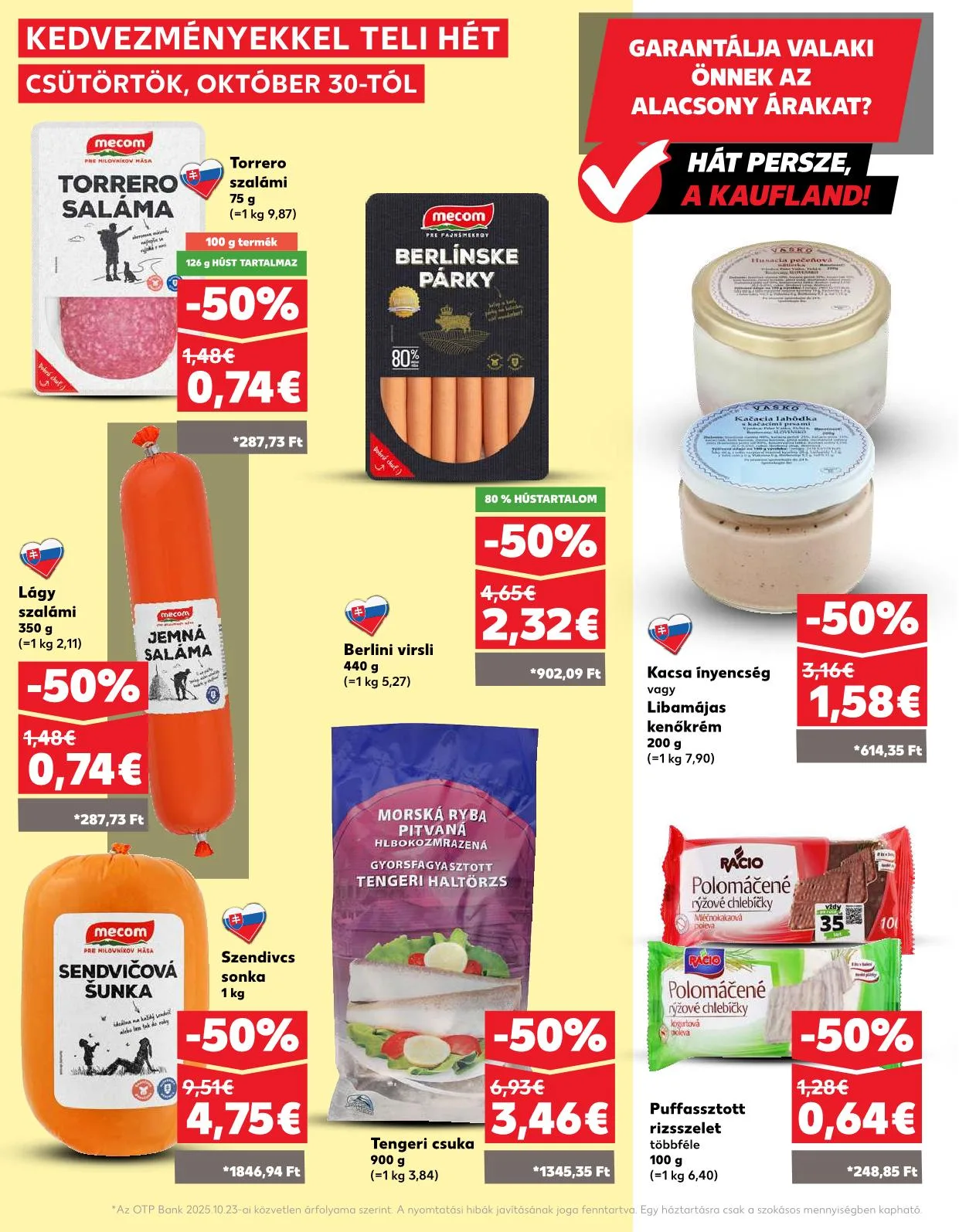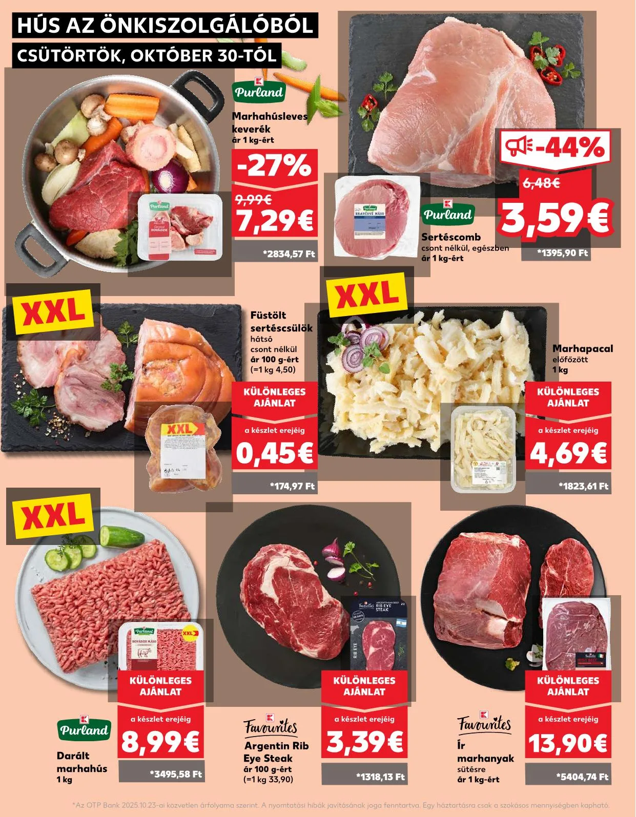 Az OTP Bank 2025.10.23-ai közvetlen árfolyama szerint. A nyomtatási hibák javításának joga fenntartva. Egy háztartásra csak a szokásos mennyiségben kapható.