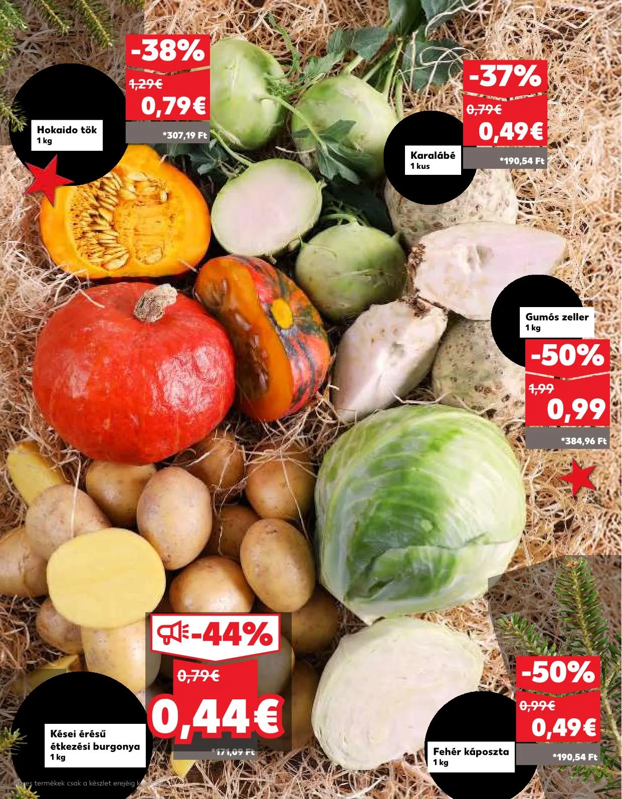 - Fehér káposzta: 1 kg – -50% – 0,99€ – 0,49€ – *190,54 Ft