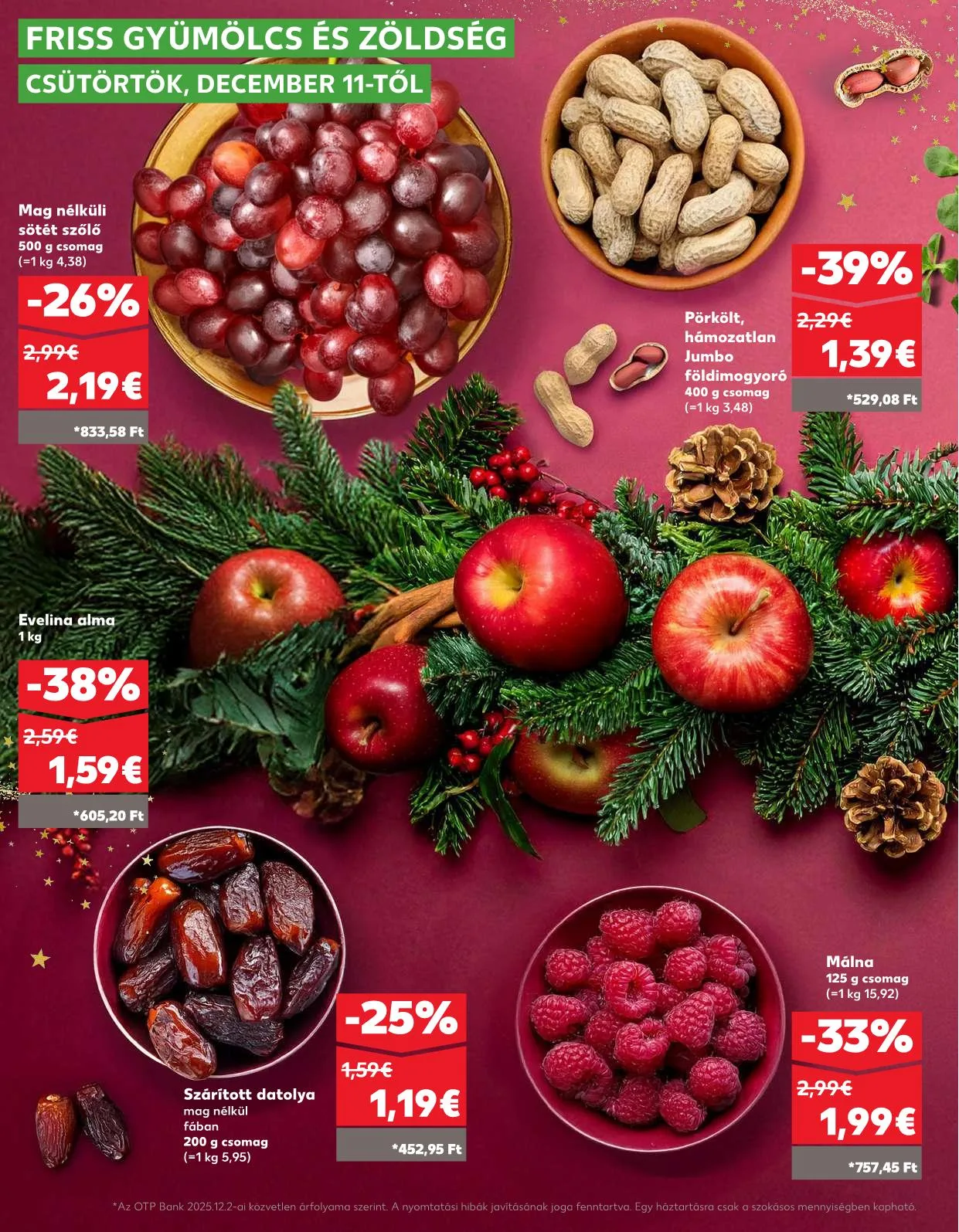 *Az OTP Bank 2025.12.2-ai közvetlen árfolyama szerint. A nyomtatási hibák javításának joga fenntartva. Egy háztartásra csak a szokásos mennyiségben kapható.
