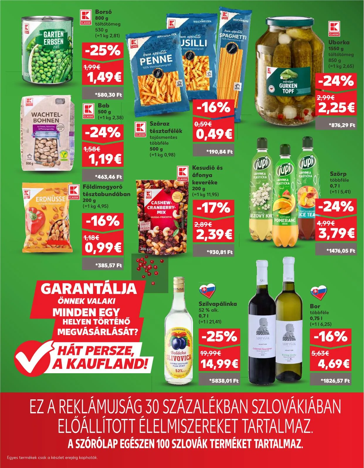 Ez a reklámújság 30%-ban Szlovákiában előállított élelmiszereket tartalmaz. A szórólap egészében 100 szlovák terméket tartalmaz. Egyes termékek csak a készlet erejéig kaphatók.