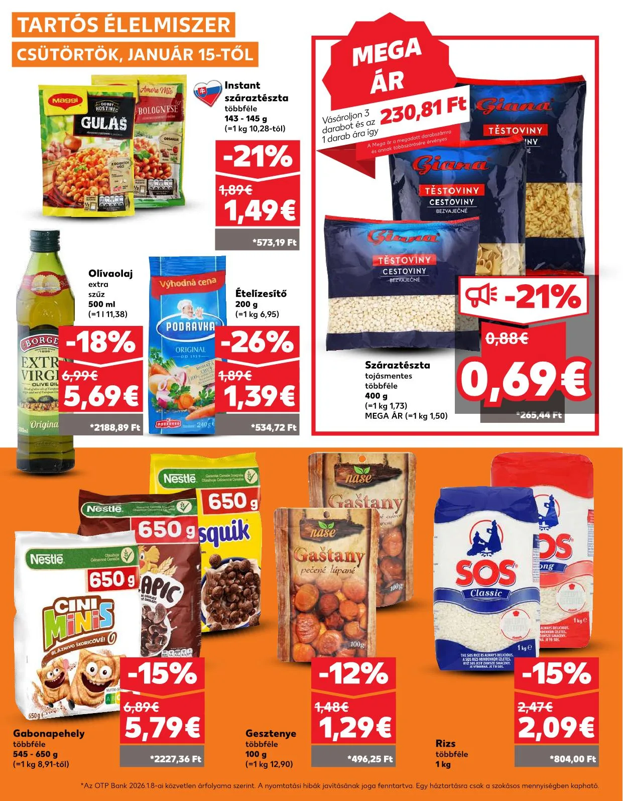 *Az OTP Bank 2026.01.08-ai közvetlen árfolyama szerint. A nyomtatási hibák javításának joga fenntartva. Egy háztartásra csak a szokásos mennyiségben kapható.