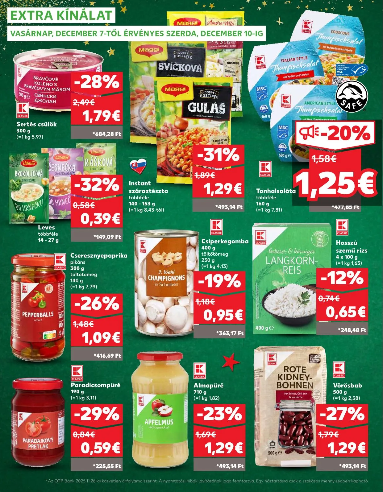 Ajánlat időtartama: Az OTP Bank 2025. 11. 26-a közvetlen árfolyama szerint. A nyomtatási hibák javításának joga fenntartva. Egy háztartásra csak a szakos mennyiségben kapható.