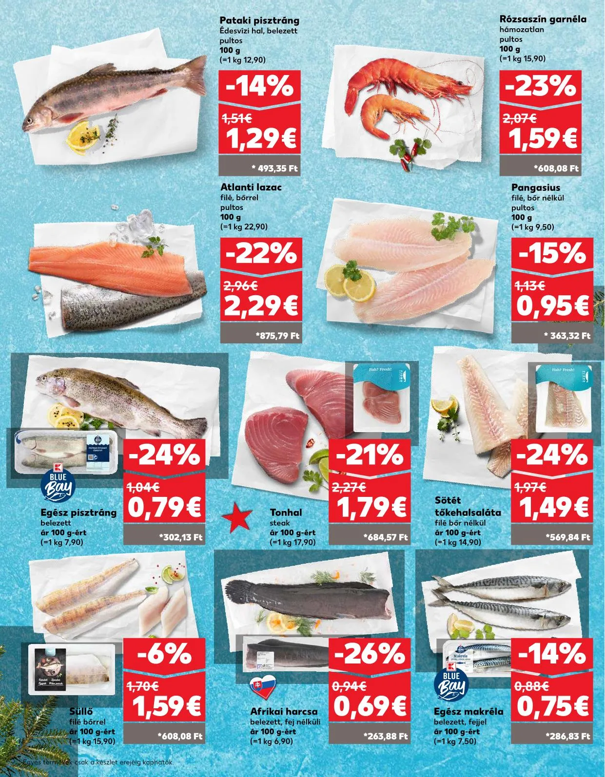 - Tavi ponty törzs ára 100 g-ért (=1 kg 9,90) – 37% – 1,59€ -> 0,99€ (*378,62 Ft)
