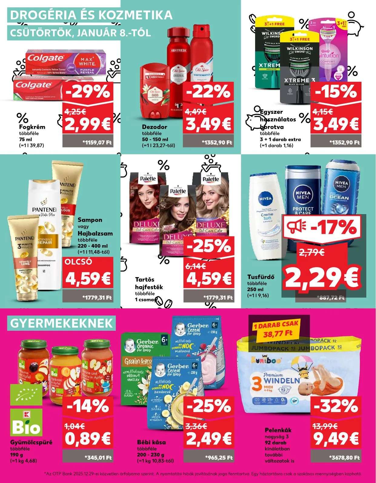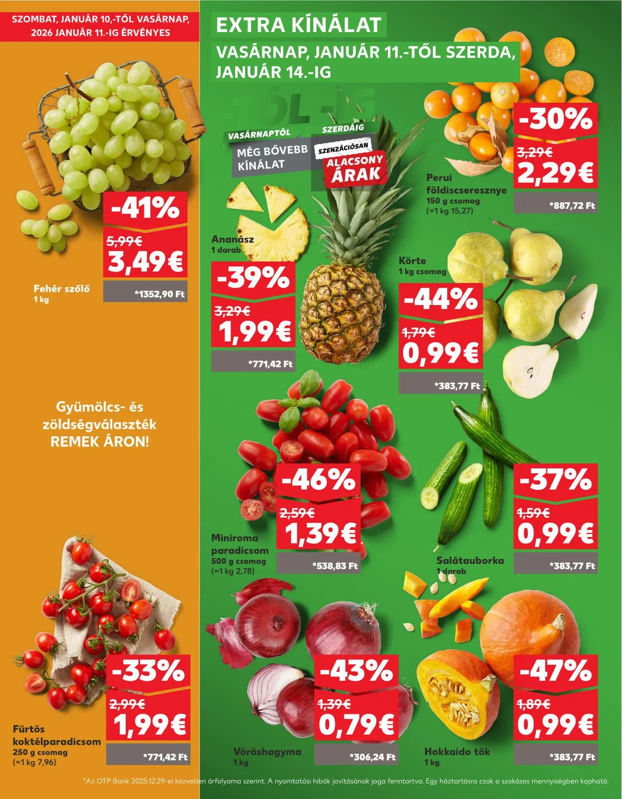* Az OTP Bank 2025.12.29-ei közvetlen árfolyama szerint. A nyomtatási hibák javításának joga fenntartva. Egy háztartásra csak a szokásos mennyiségben kapható.