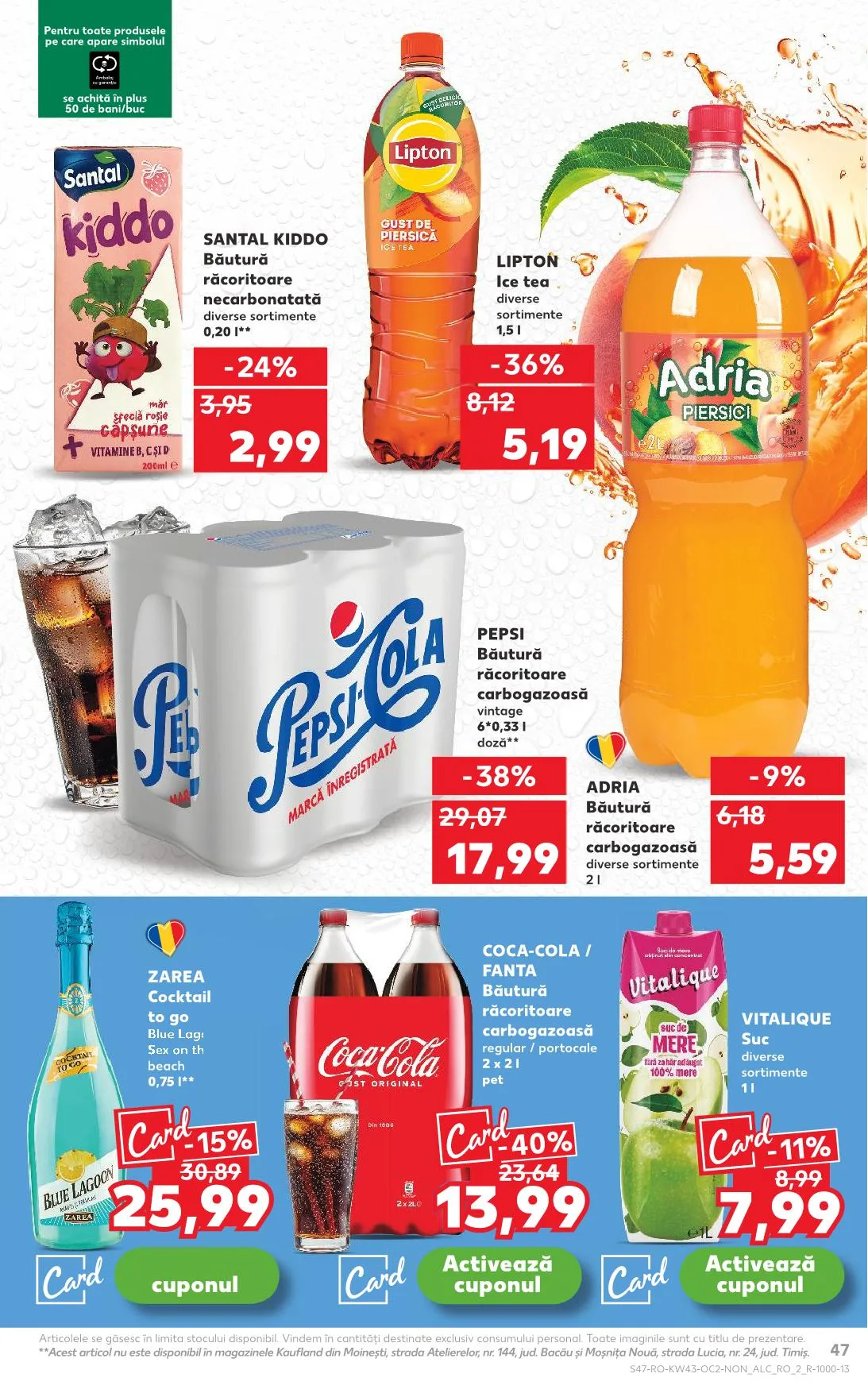 Acest articol nu este disponibil în magazinele Kaufland din Moinești, strada Atelierelor, nr. 144, jud. Bacău și Moșnița Nouă, strada Lucia, nr. 24, jud. Timiș.