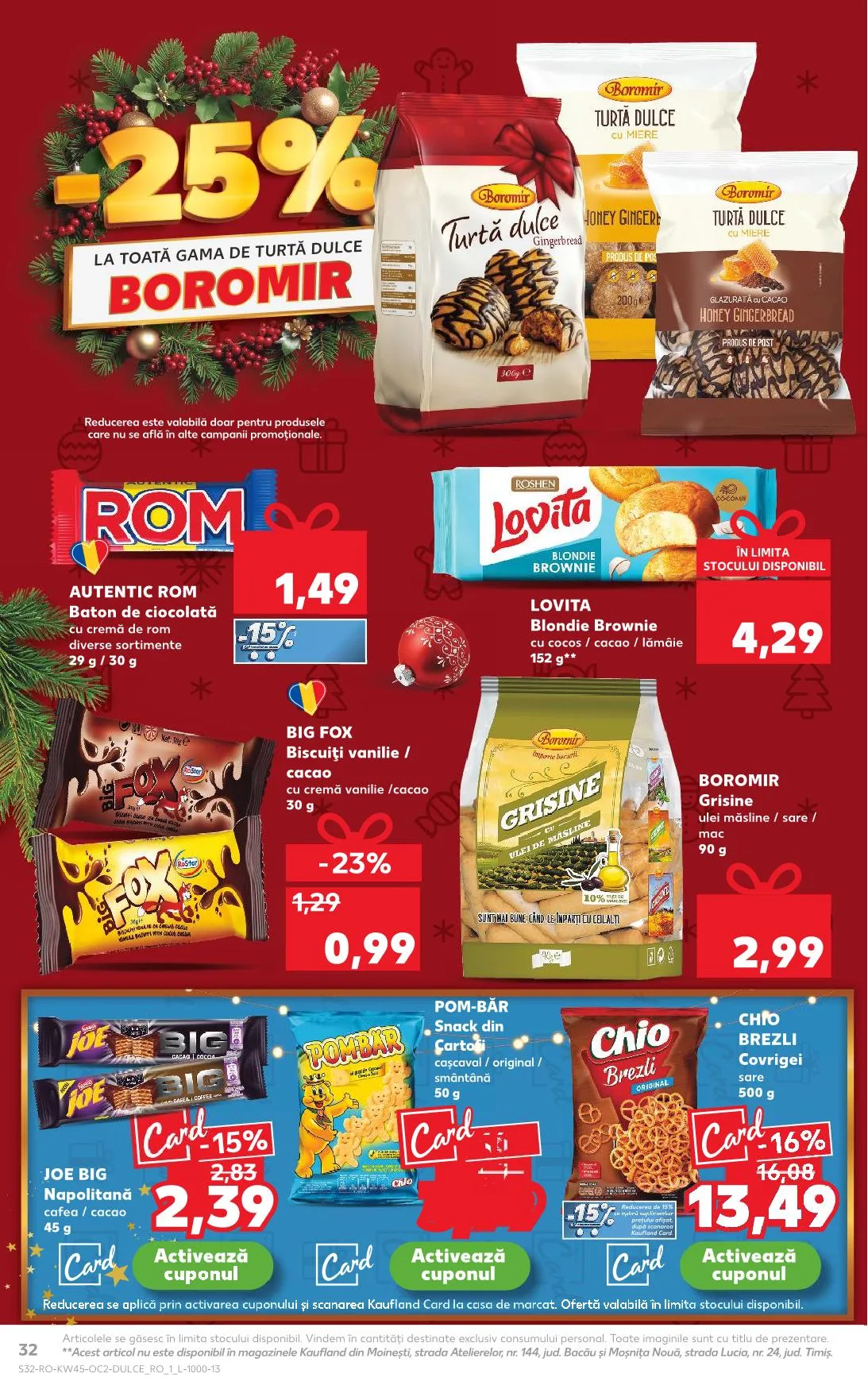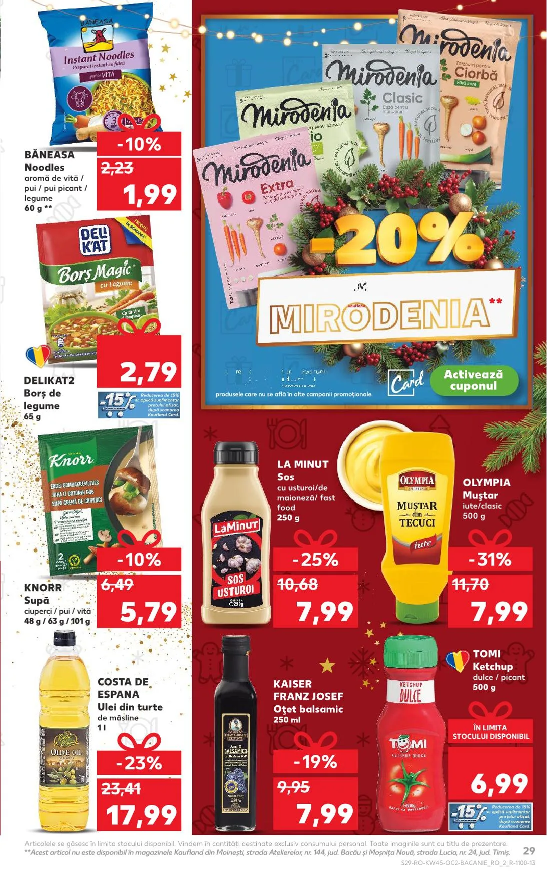 Megjegyzés: Az alábbi cikkek nem érhetők el a Kaufland üzletekben: Moineşti, Atelierelor u. 144, Bacău megyében és Moşniţa Nouă, Lucia u. 24, Timiş megyében.
