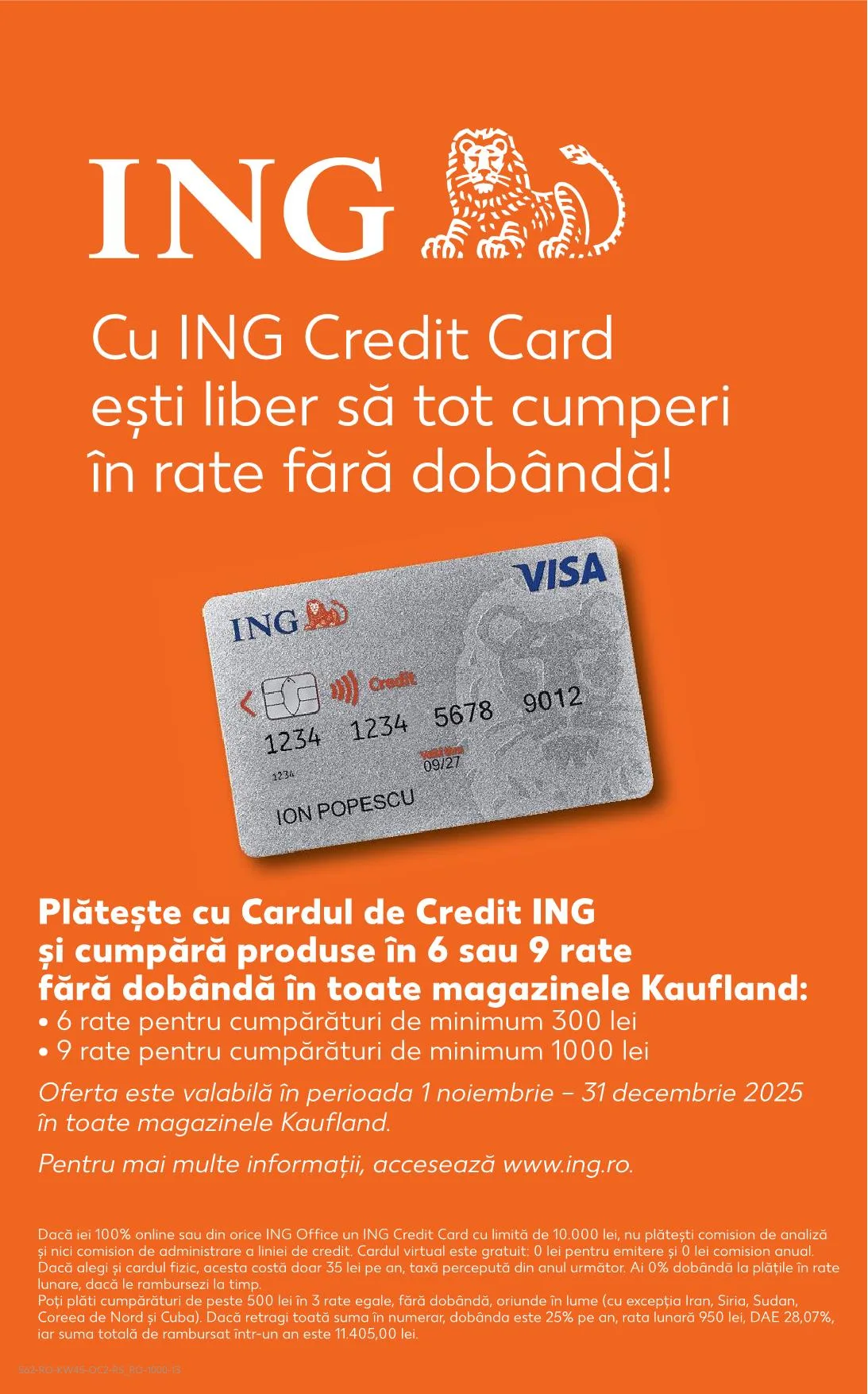 Plăteşte cu Cardul de Credit ING şi cumpără produse în 6 sau 9 rate fără dobândă în toate magazinele Kaufland: