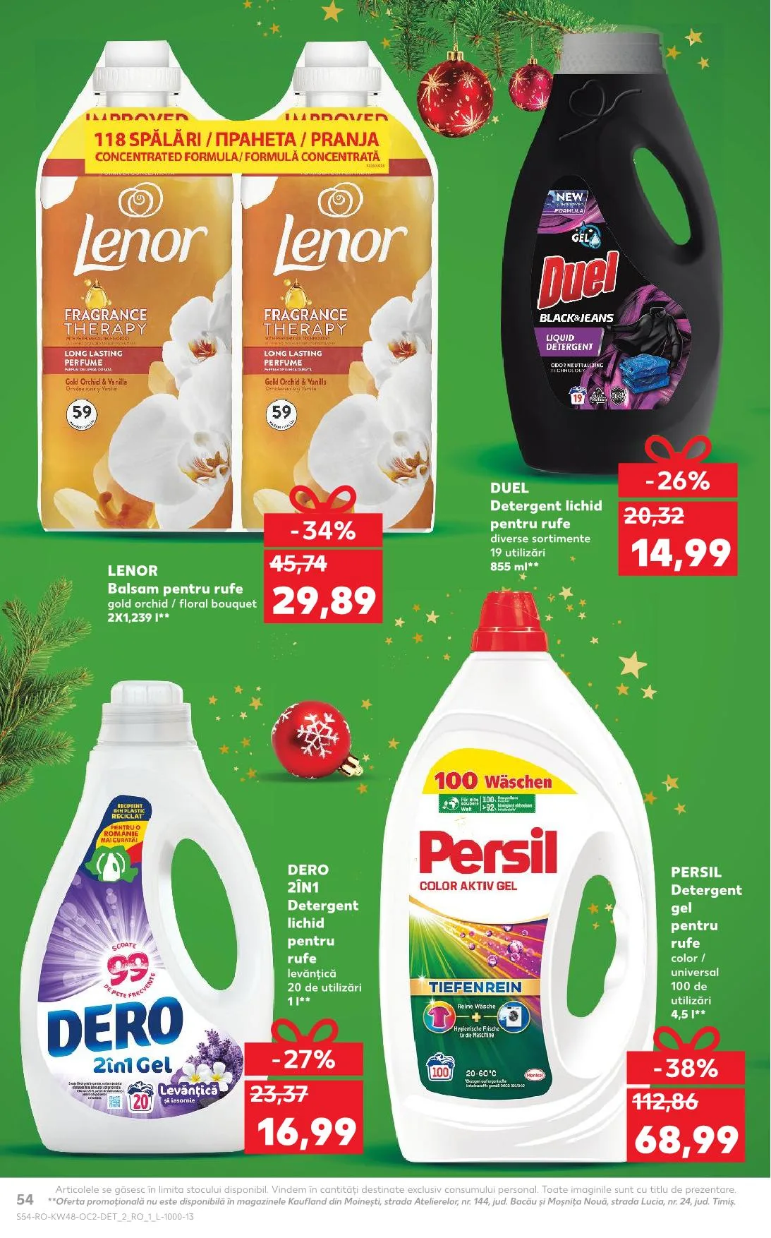 Ajánlat időtartama: A 54-es ajánlat nem elérhető a Kaufland üzletekben Moineşti-ben (strada Atelierelor, nr. 144, jud. Bacău) és Moşniţa Nouă-ban (strada Lucia, nr. 24, jud. Timiş).