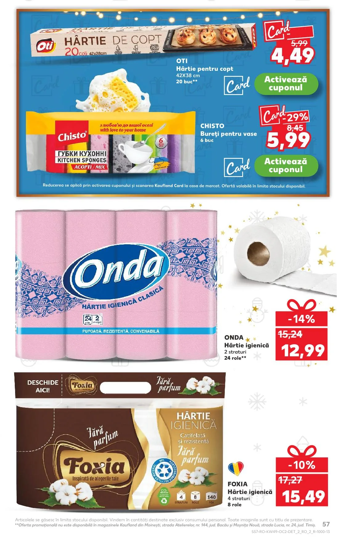 Oferta promoțională nu este disponibilă în magazinele Kaufland din Moineşti, strada Atelierelor, nr. 144, jud. Bacău şi Moşniţa Nouă, strada Lucia, nr. 24, jud. Timiş.