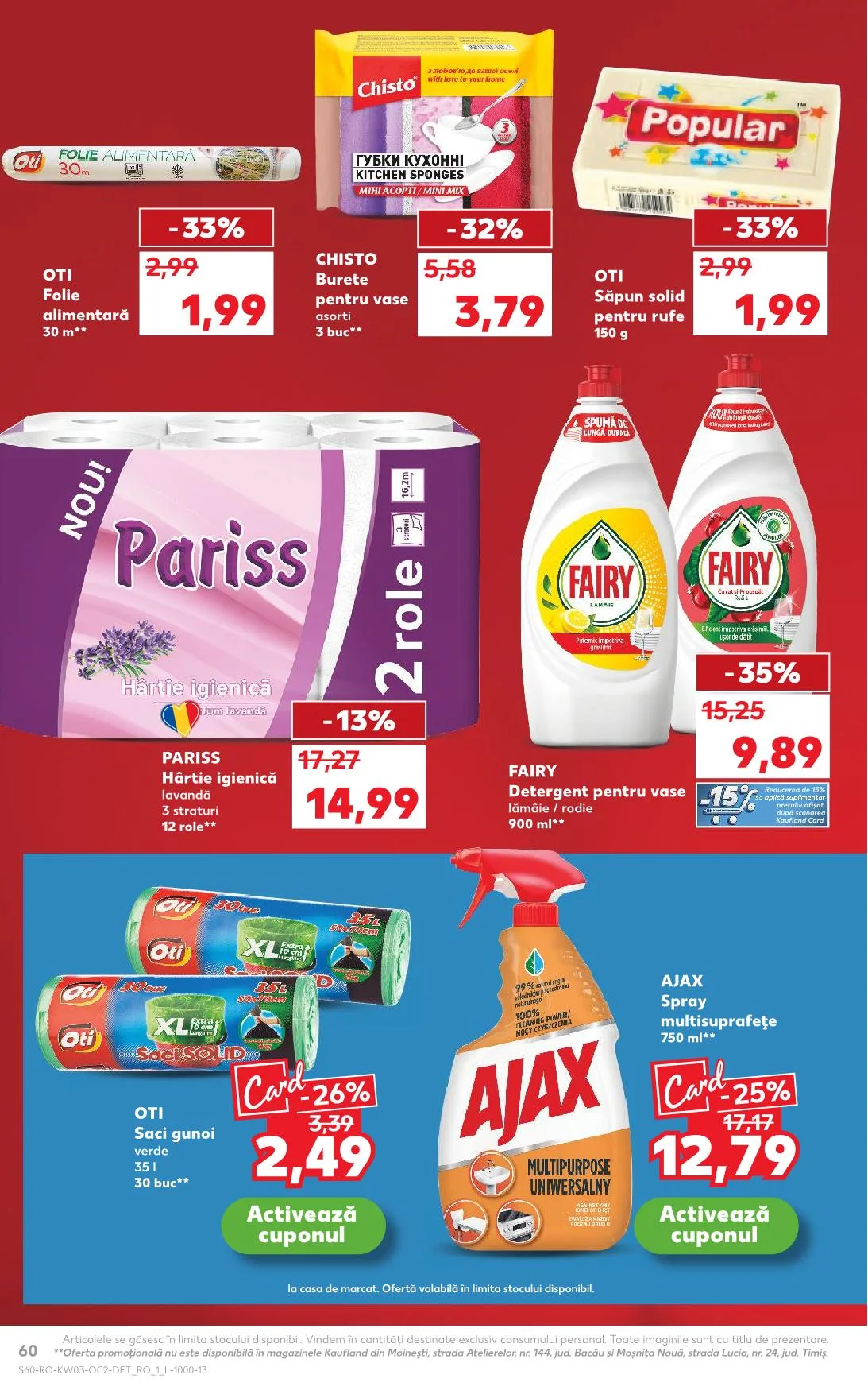 Reducerea: Se aplică az aktiválásakor a kuponnak és a Kaufland Card beolvasásával a pénztárnál. Az ajánlat érvényes a készlet erejéig.