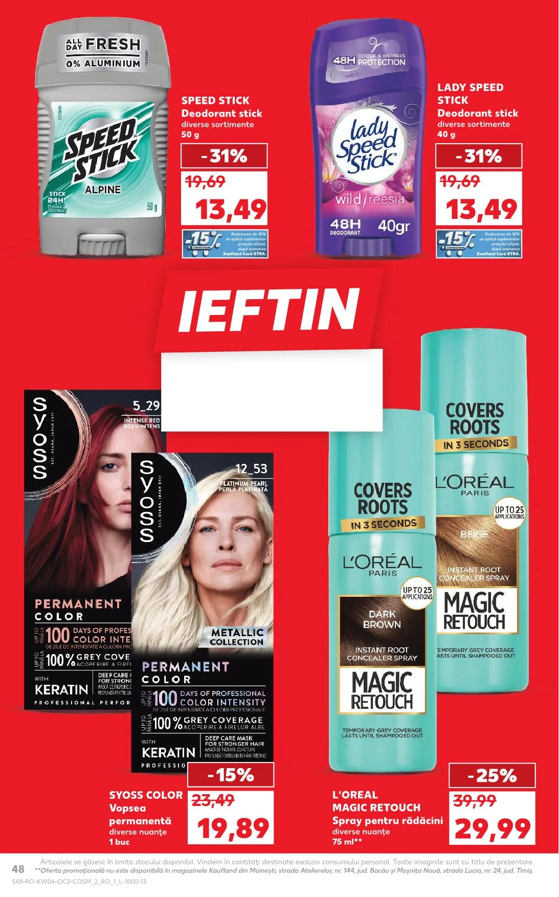 Oferta promoţională nu este disponibilă în magazinele Kaufland din Moineşti, strada Atelierelor, nr. 144, jud. Bacău, és Moşniţa Nouă, strada Lucia, nr. 24, jud. Timiş.
