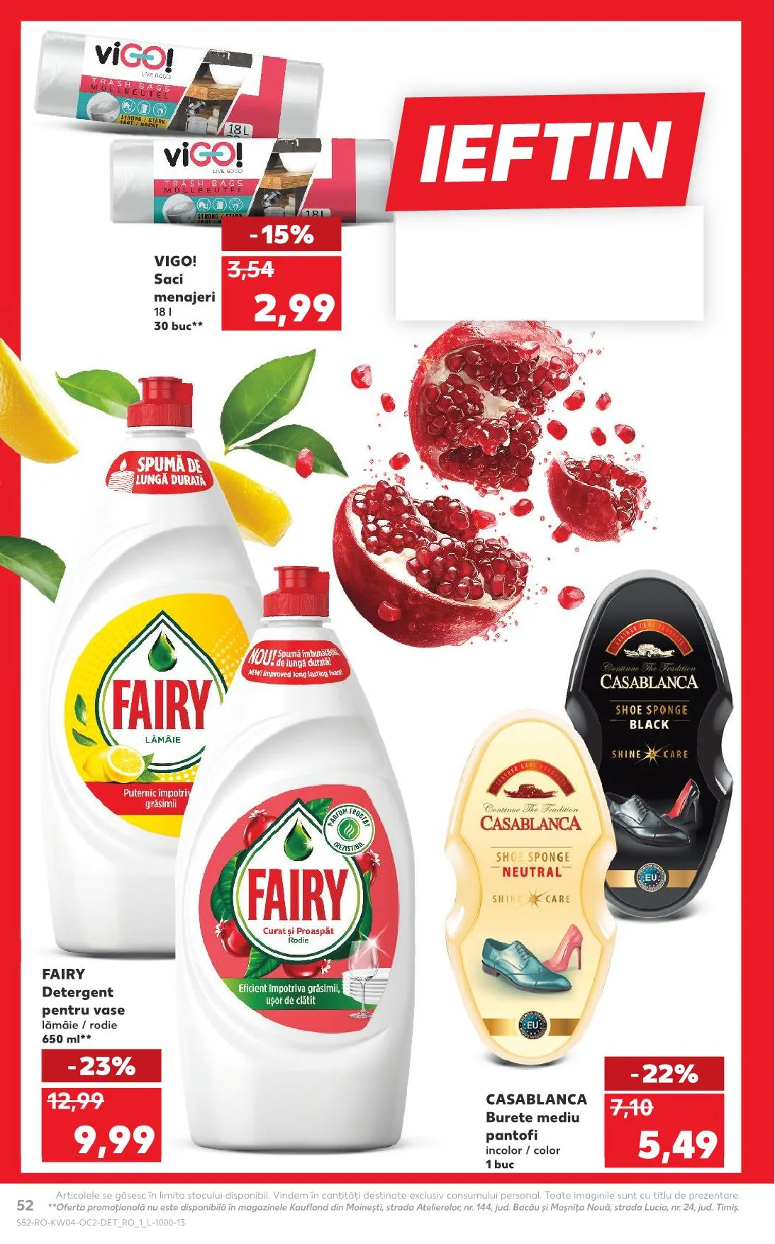 52 **Oferta promoţională nu este disponibilă în magazinele Kaufland din Moineşti, strada Atelierelor, nr. 144, jud. Bacău şi Moşniţa Nouă, strada Lucia, nr. 24, jud. Timiş.