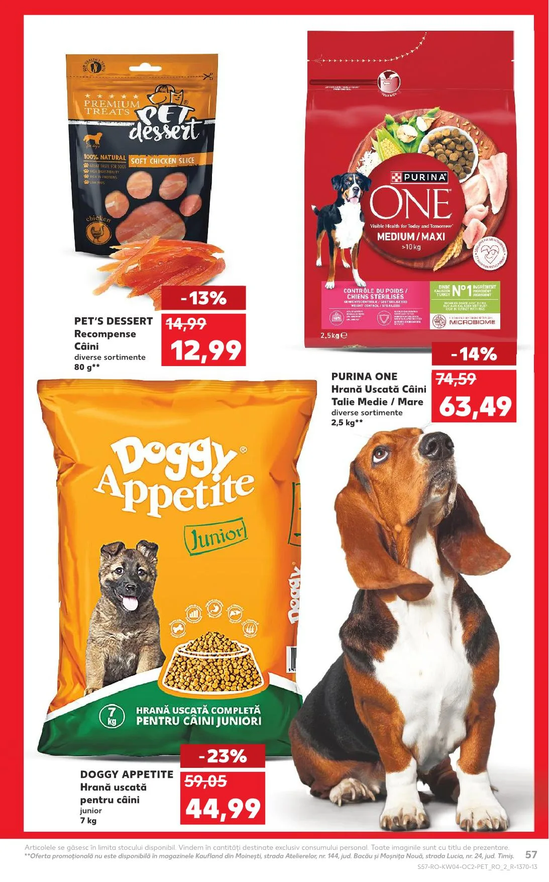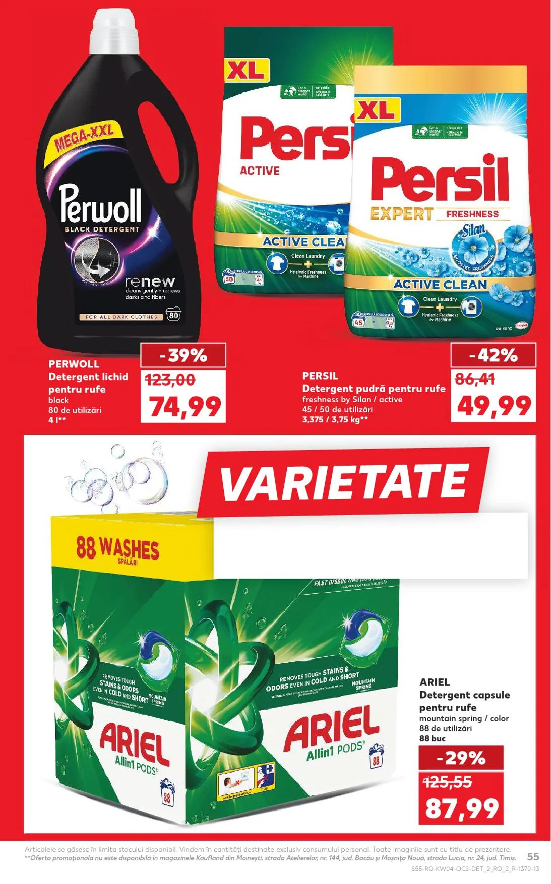 56 Promo ajánlat nem érhető el a Kaufland boltjaiban Moineşti, Atelierelor utca, nr. 144, Bacău és Moşniţa Nouă, Lucia utca, nr. 24, Timiş megyében.