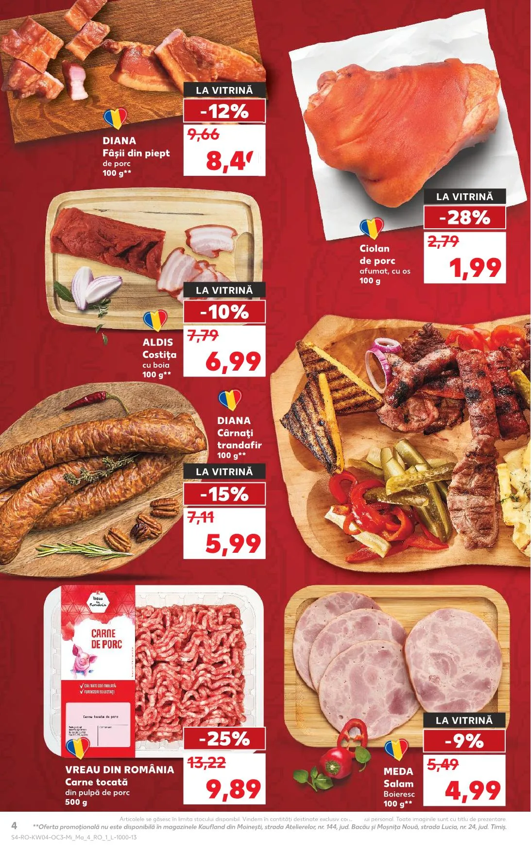 Megjegyzés: Articolele se găsesc în limita stocului disponibil. Vindem în cantităţi destinate exclusiv consumului personal. Toate imaginile sunt cu titlu de prezentare. **Oferta promoţională nu este disponibilă în magazinele Kaufland din Moineşti, strada Atelierelor, nr. 144, jud. Bacău şi Moşniţa Nouă, strada Lucia, nr. 24, jud. Timiş.