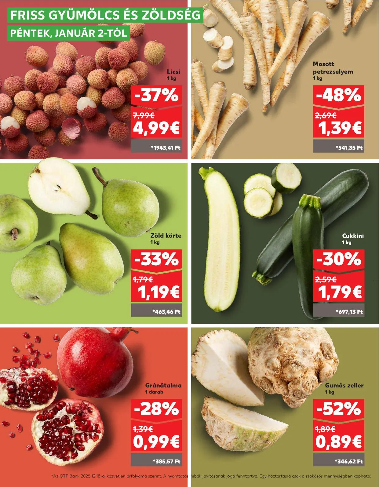 *Az OTP Bank 2025.12.18-ai közvetlen árfolyama szerint. A nyomtatási hibák javításának joga fenntartva. Egy háztartásra csak a szokásos mennyiségben kapható.
