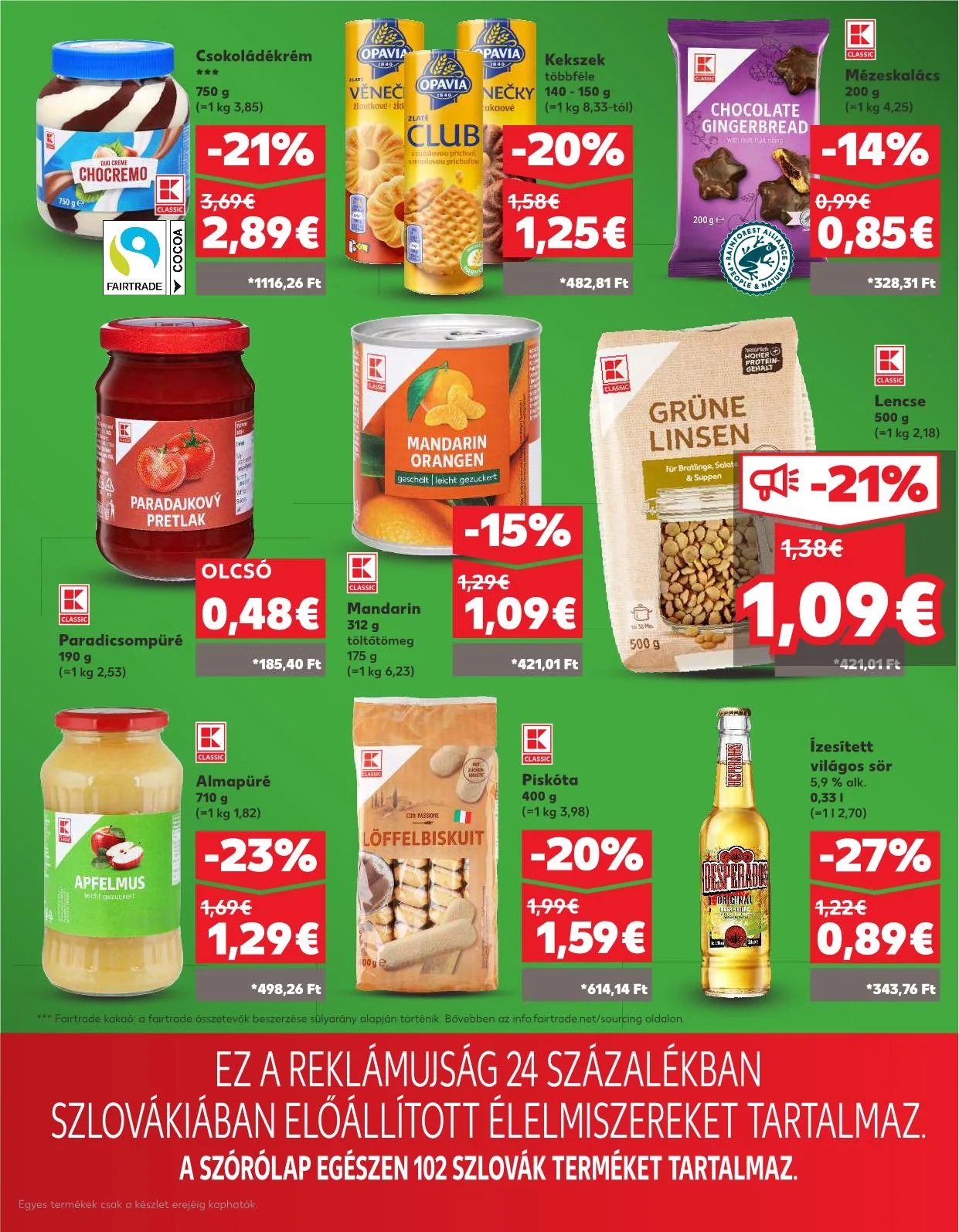 A szórólap egészén 102 szlovák terméket tartalmaz.