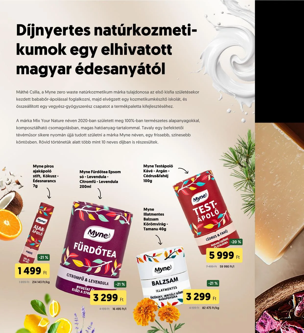 Máthé Csilla, a Myne zero waste natúrkozmetikum márka tulajdonosa az első kisfia születésekor kezdett bababőr-ápolással foglalkozni, majd elvégzett egy kozmetikumkészítő iskolát, és összeállított egy vegyész-gyógyszerész csapatot a termékpaletta kifejlesztéséhez.
