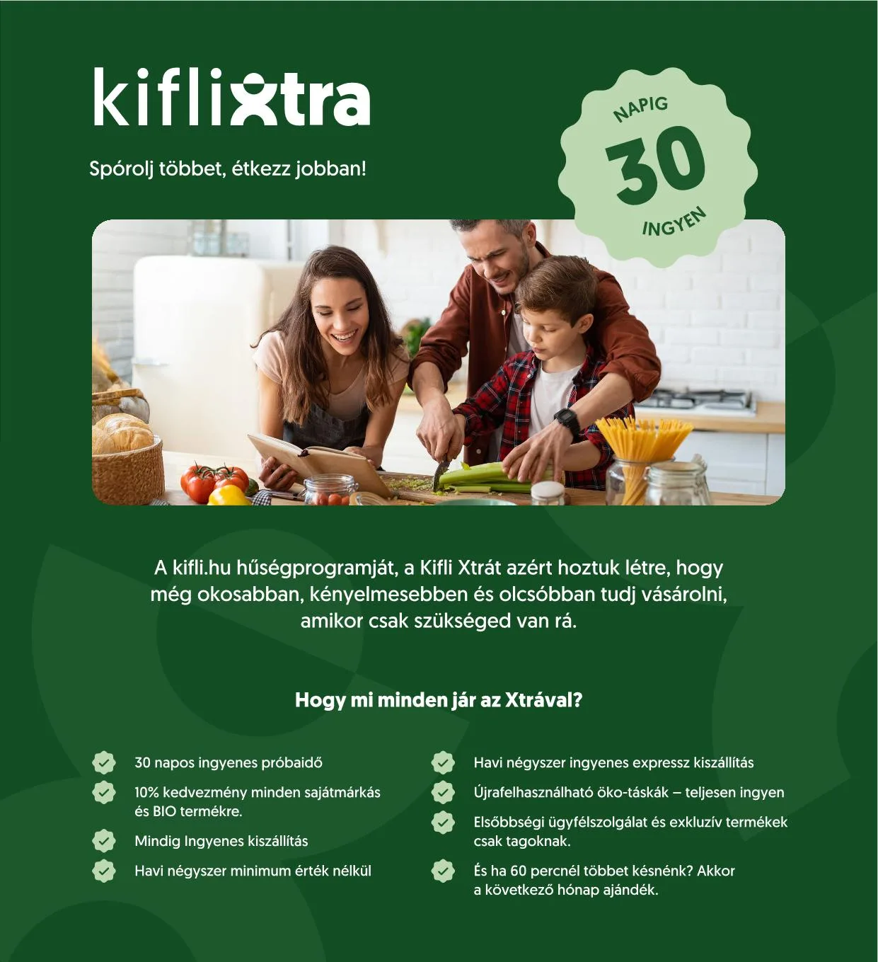 A Kifli.hu hűségprogramját, a Kifli Xtrát azért hoztuk létre, hogy még okosabban, kényelmesebben és olcsóbban tudj vásárolni, amikor csak szükséged van rá.