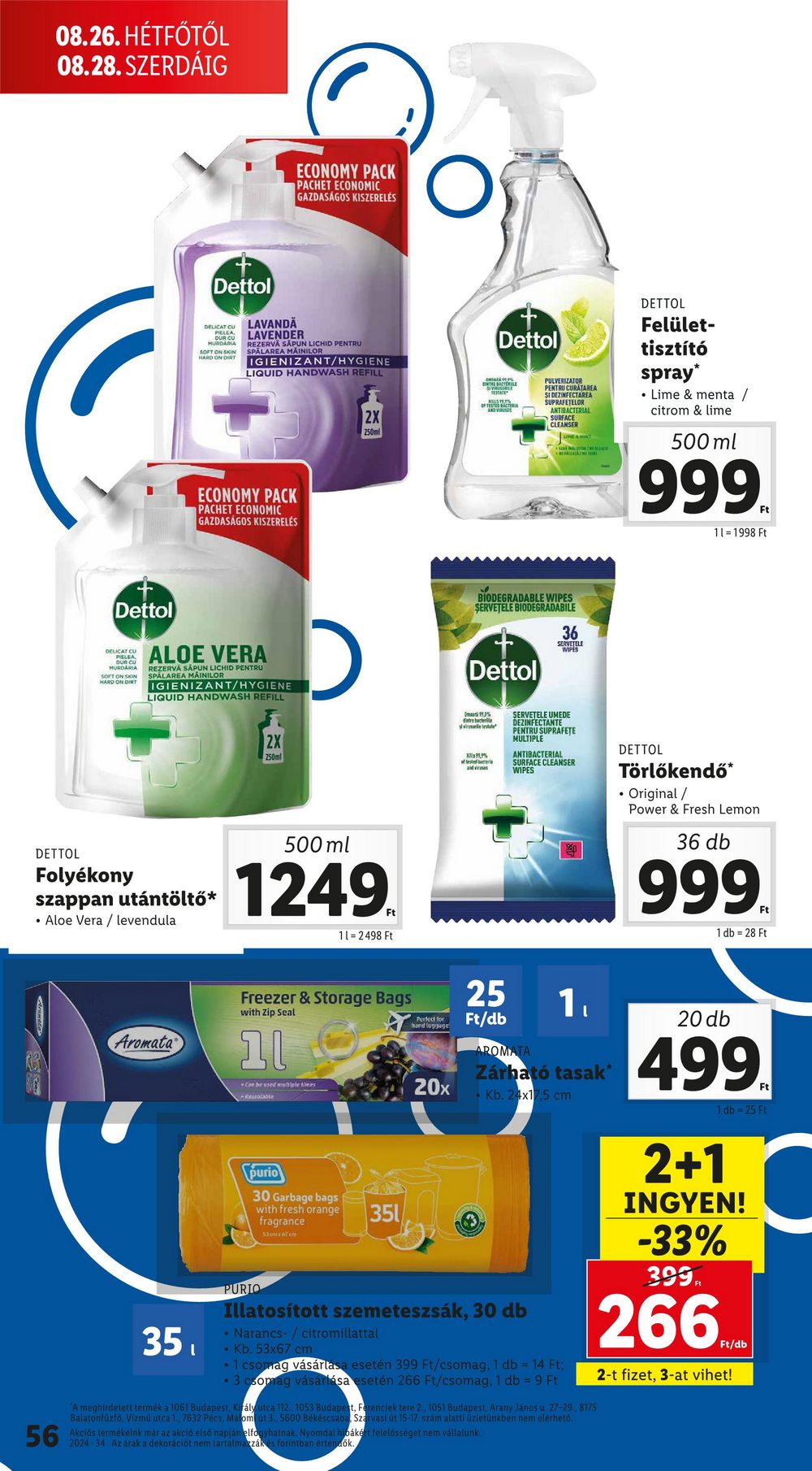 08.26. HÉTFŐTŐL 08.28. SZERDÁIG ECONOMY PACK PACHET ECONOMIC GAZDASÁGOS KISZERELÉS Dettol DELICAT CU MELEA MURDARIA HARD ON DIRT LAVANDA LAVENDER REZERVA SAPUN LICHID PENTRU SPALAREA MAINILOR IGIENIZANT/HYGIENE LIQUID HANDWASH REFILL ECONOMY PACK PACHET ECONOMIC GAZDASÁGOS KISZERELÉS Dettol OF TESTED AC 2X 250ml PULVERIZATOR PENTRU CURATAREA SI DEZINFECTAREA SUPRAFETELOR ANTIBACTERIAL SURFACE CLEANSER DETTOL Felület- tisztító spray* • Lime & menta / citrom & lime 500 ml 999 Ft 11-1998 Ft Dettol DELICATION MURDARIA SOFT ON SKIN HARD ON DIRT ALOE VERA REZERVÁ SAPUN LICHID PENTRU SPALAREA MAINILOR IGIENIZANT/HYGIENE LIQUID HANDWASH REFILL 2X 250ml D DETTOL Folyékony szappan utántöltő* Aloe Vera / levendula 500 ml 1249. 11=2498 Ft BIODEGRADABLE WIPES SERVETELE BIODEGRADABILE Dettol Omar 19.3% detre bacterile % of tested bacteria and 36 SERVETELE WIPES SERVETELE UMEDE DEZINFECTANTE PENTRU SUPRAFETE MULTIPLE ANTIBACTERIAL SURFACE CLEA WIPES CLEANSER DETTOL Törlőkendő* • Original / Power & Fresh Lemon 36 db 999. 1 db = 28 Ft Aromata Freezer & Storage Bags with Zip Seal וג •Can be used multiple times -Resealable Perfect for hand luggage 20x 25 25 Ft/db AROMATA 1₁ Zárható tasak* Kb. 24×17,5 cm 20 db 499. 1 db = 25 Ft 35 purio 30 Garbage bags with fresh orange fragrance 53x6m PURIO 31 351 Illatosított szemeteszsák, 30 db • Narancs- / citromillattal . Kb. 53×67 cm ⚫ 1 csomag vásárlása esetén 399 Ft/csomag, 1 db = 14 Ft; ⚫3 csomag vásárlása esetén 266 Ft/csomag, 1 db = 9 Ft A meghirdetett termék a 1061 Budapest, Király utca 112., 1053 Budapest, Ferenciek tere 2., 1051 Budapest, Arany János u. 27-29., 8175 Balatonfűzfő, Vízmű utca 1., 7632 Pécs, Malom út 3., 5600 Békéscsaba Szarvasi út 15-17. szám alatti üzletünkben nem elérhető. 56 Akciós termékeink már az akció első napján elfogyhatnak. Nyomdai hibákért felelősséget nem vállalunk. 2024-34 Az árak a dekorációt nem tartalmazzák es forintban értendők. 2+1 INGYEN! -33% 399RE 266.Ce Ft/db 2-t fizet, 3-at vihet!