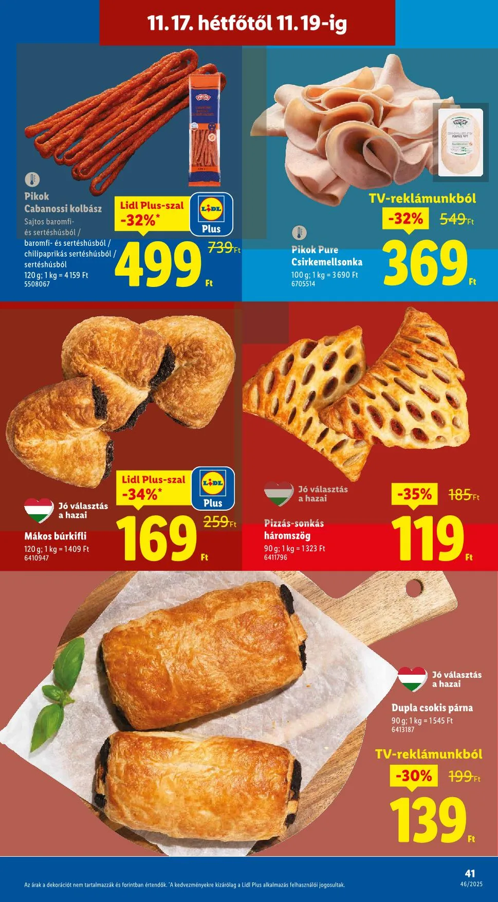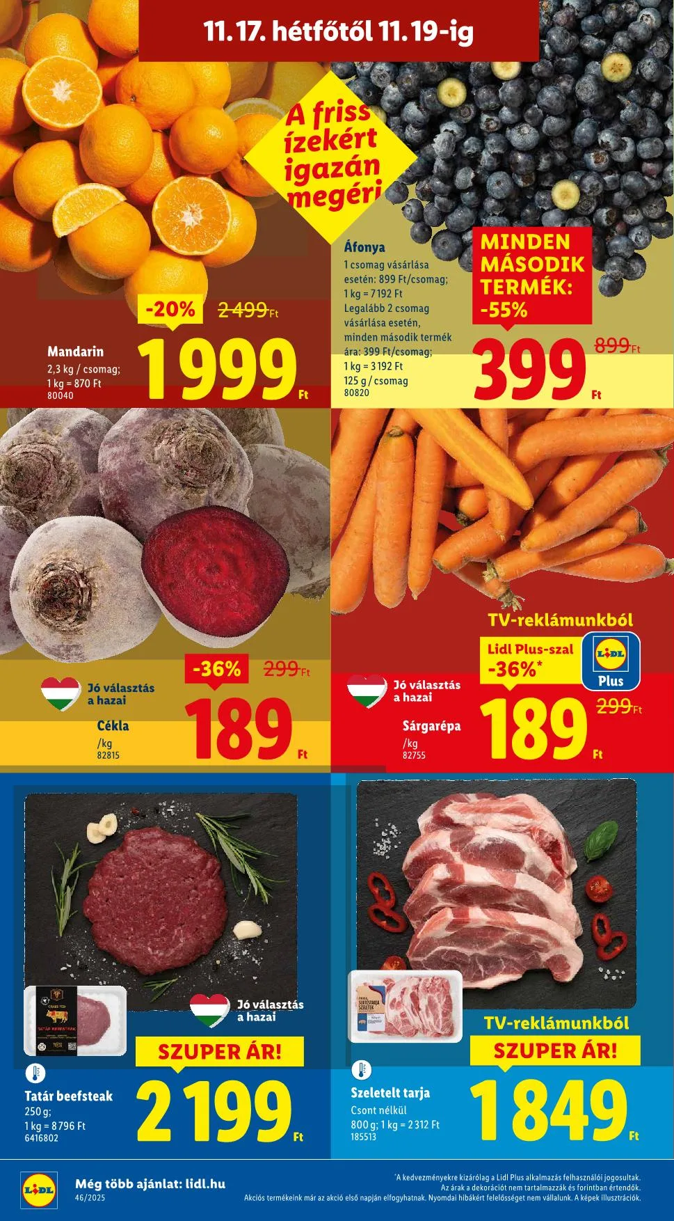 „A kedvezményekre kizárólag a Lidl Plus alkalmazás felhasználói jogosultak. Az árak a dekorációt nem tartalmazzák és forintban értendők. Akciós termékeink már az akció első napján elfogyhatnak. Nyomdai hibákért felelősséget nem vállalunk. A képek illusztrációk.”