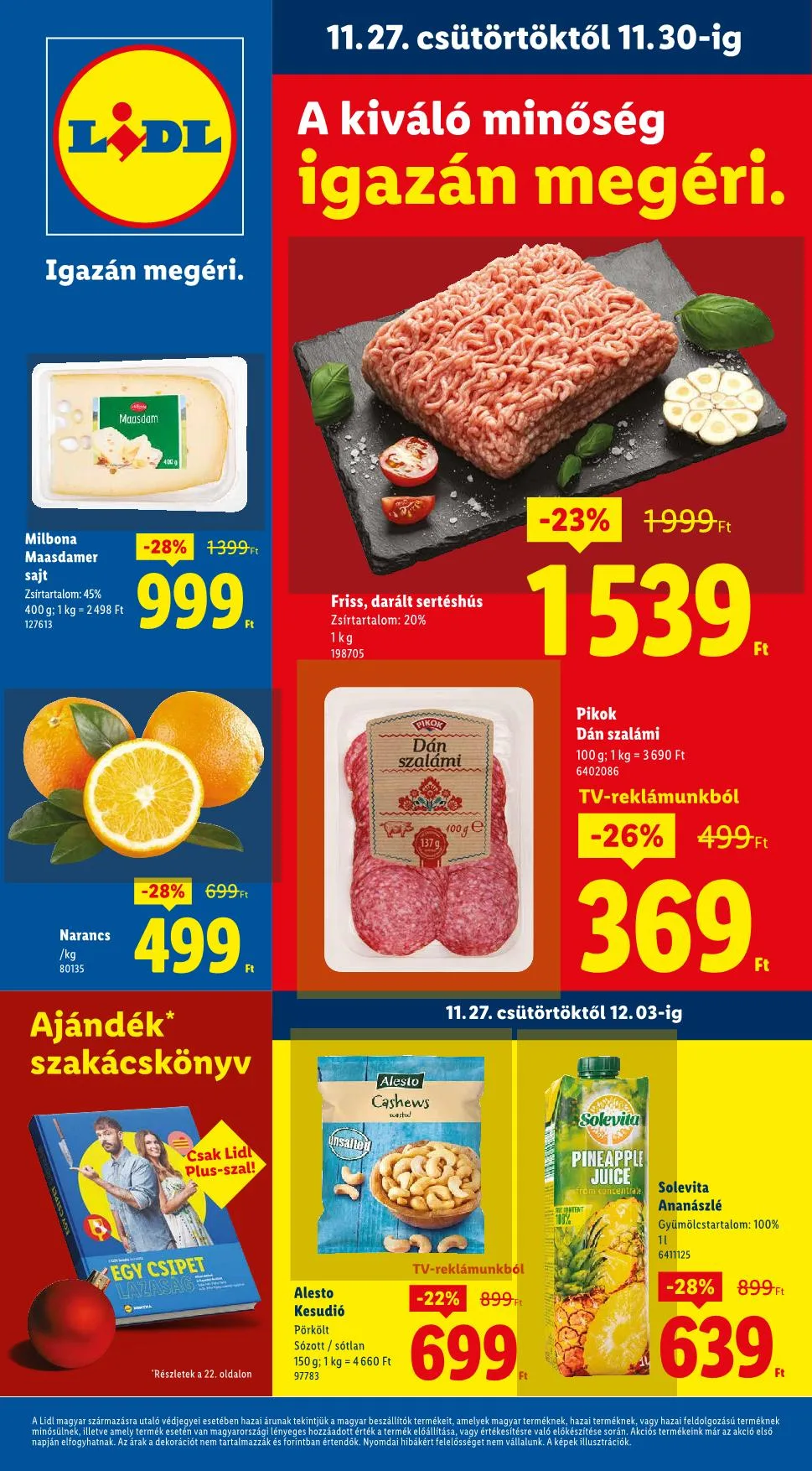 A Lidl magyar származásra utaló védjegyei esetében hazai árunak tekintjük a magyar beszállítók termékeit, amelyek magyar terméknek, hazai terméknek vagy hazai feldolgozású terméknek minősülnek, illetve amely termék esetén van magyarországi lényeges hozzáadott érték a termék előállítása, vagy értékesítésre való előkészítése során. Akciós termékeink már az akció első napján elfogyhatnak. Az árak a dekorációt nem tartalmazzák, és forintban értendők. Nyomdai hibákért felelősséget nem vállalunk. A képek illusztrációk.