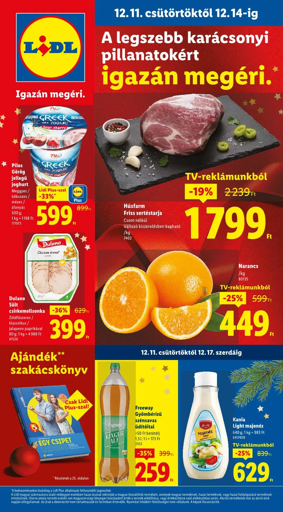 Ajánlat érvényes: 12.11. csütörtöktől 12.14-ig és 12.11. csütörtöktől 12.17. szerdáig. Csak Lidl Plus-szal! Részletek a 25. oldalon.
