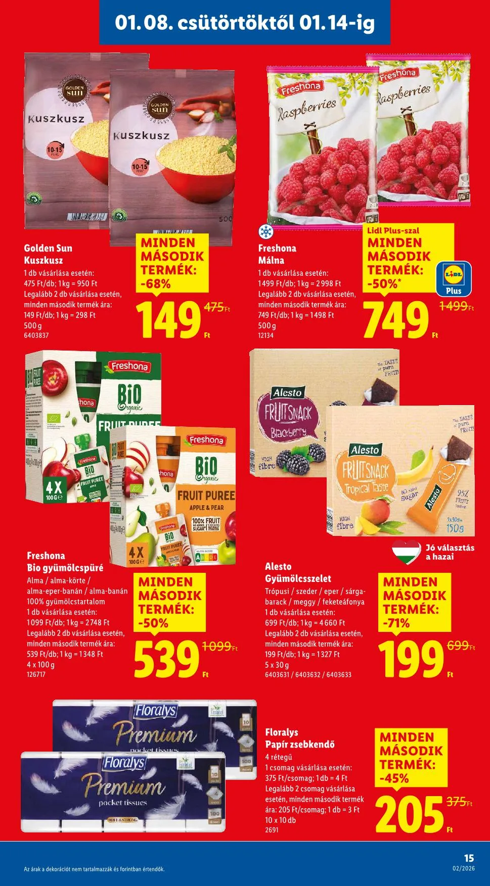 * A kedvezményekre kizárólag a Lidl Plus alkalmazás felhasználói jogosultak. Akciós termékeink már az akció első napján elfogyhatnak. Nyomdai hibákért felelősséget nem vállalunk. A képek illusztrációk. Az árak a dekorációt nem tartalmazzák és forintban értendők.