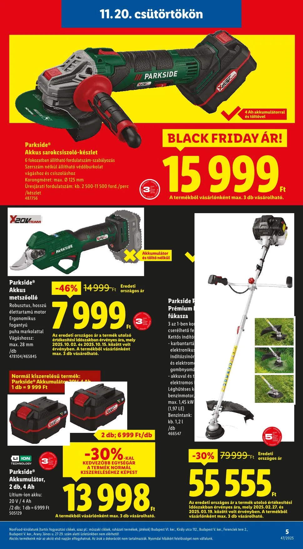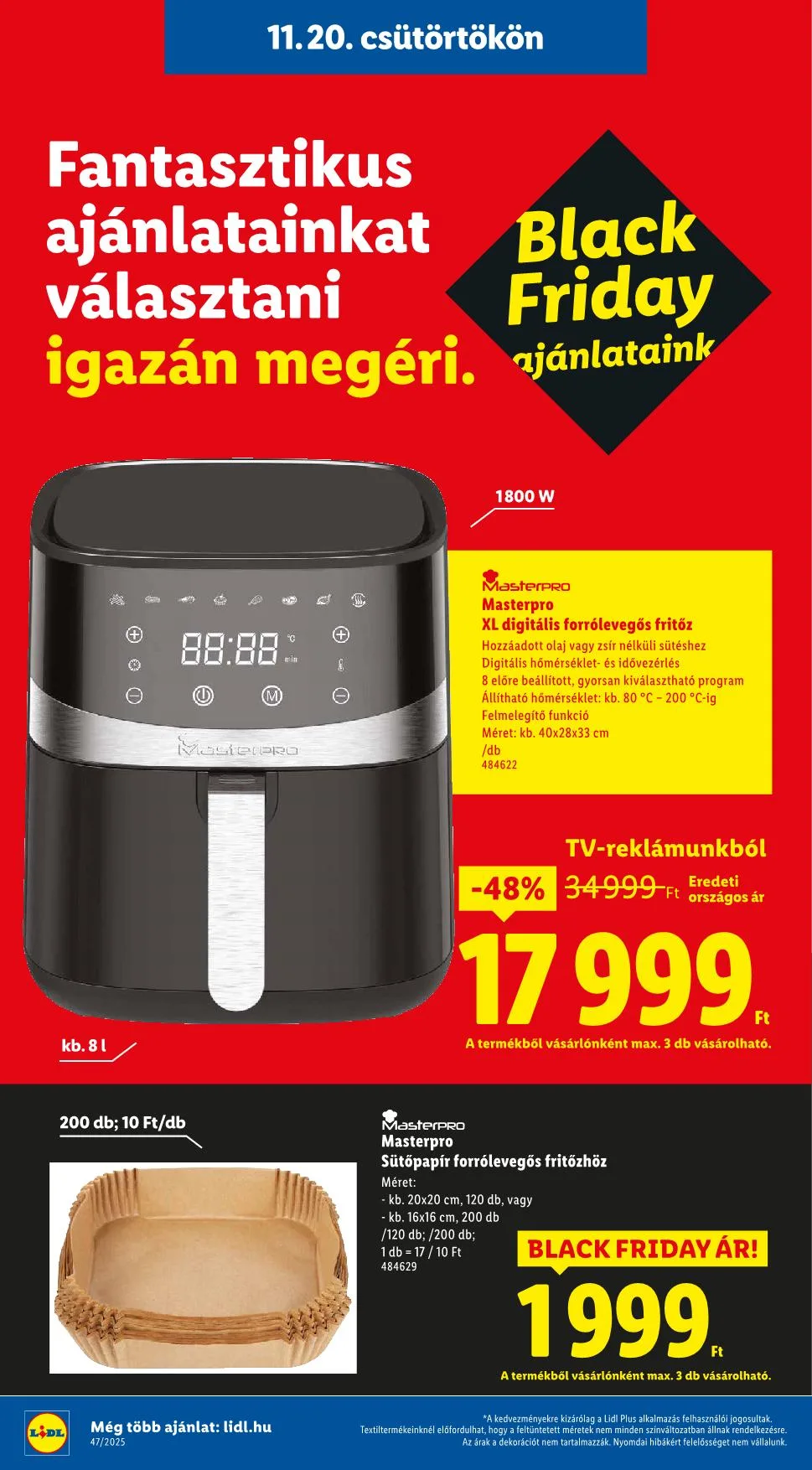 Megjegyzés: NonFood-kínálatunk (tartós fogyasztási cikkek, azaz pl.: műszaki cikkek, ruházati termékek, játékok) Budapest VI. ker., Király utca 112., Budapest V. ker., Ferenciek tere 2., Budapest V. ker., Arany János u. 27-29. szám alatti üzletünkben nem elérhető! Akciós termékeink már az akció első napján elfogyhatnak. Ajánlat érvényessége: 2025. 11. 24.