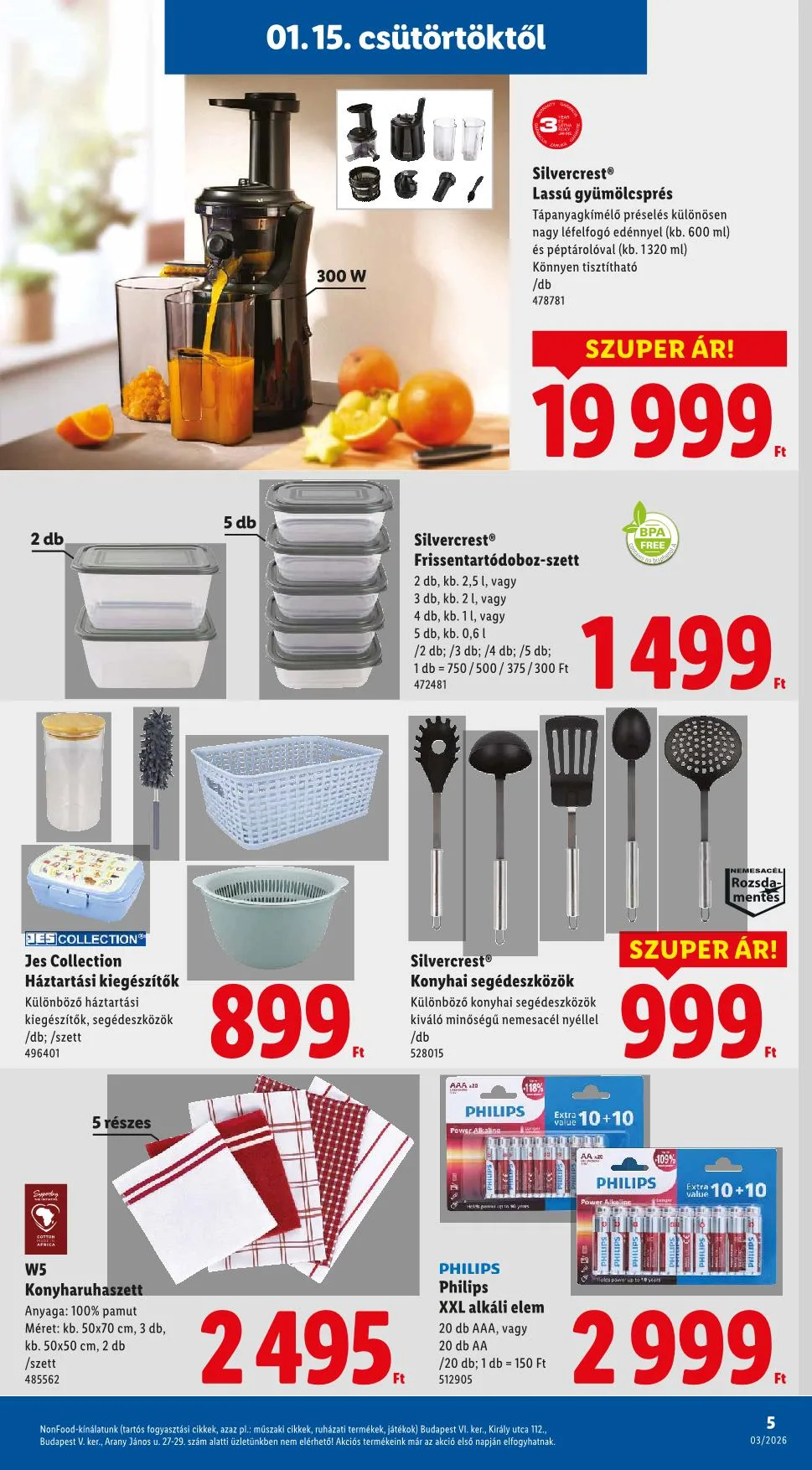 NonFood-kínálatunk (tartós fogyasztási cikkek, műszaki cikkek, ruházati termékek, játékok) Budapest VI. ker., Király utca 112., Budapest V. ker., Arany János u. 27-29. szám alatti üzletünkben nem elérhető!