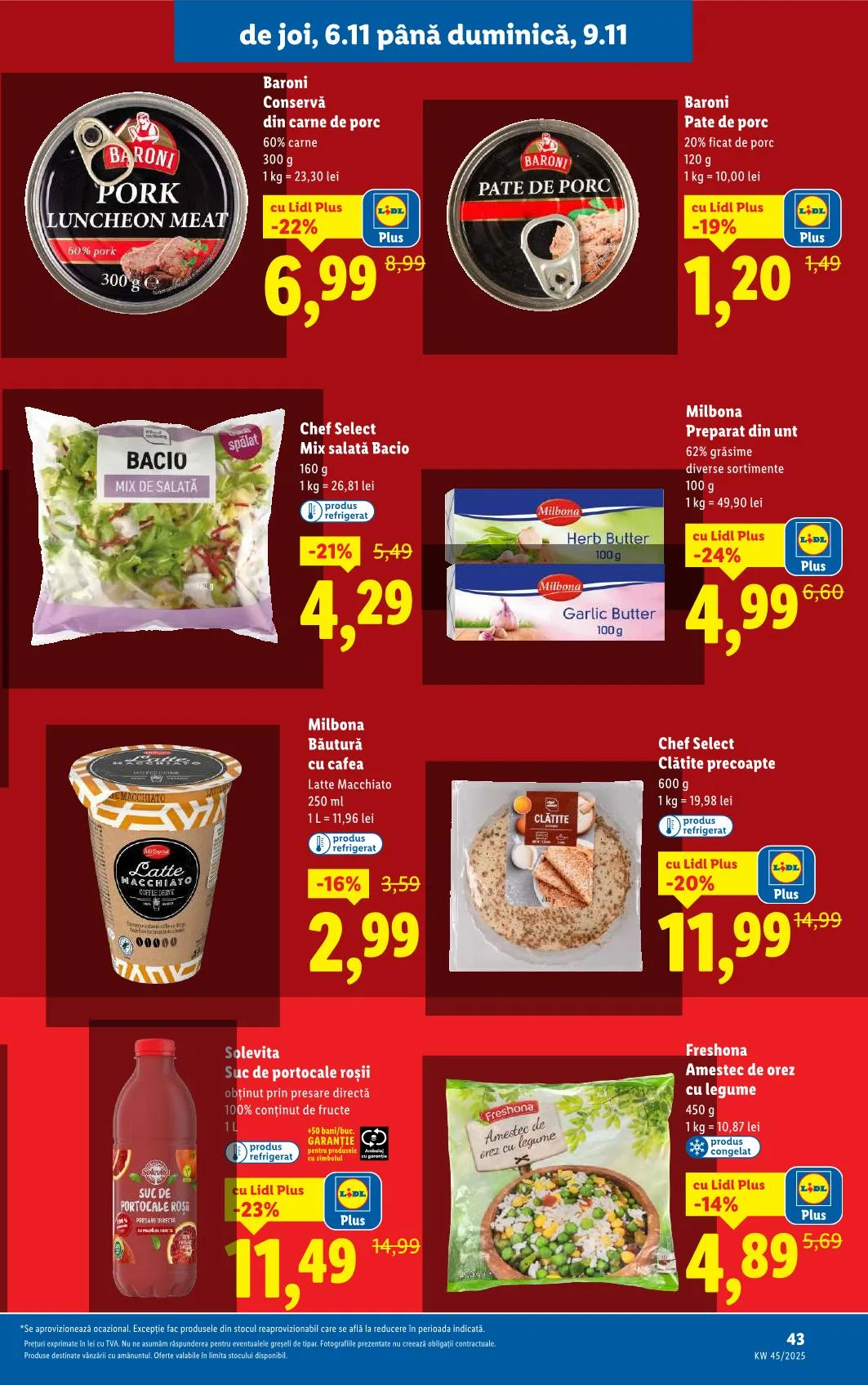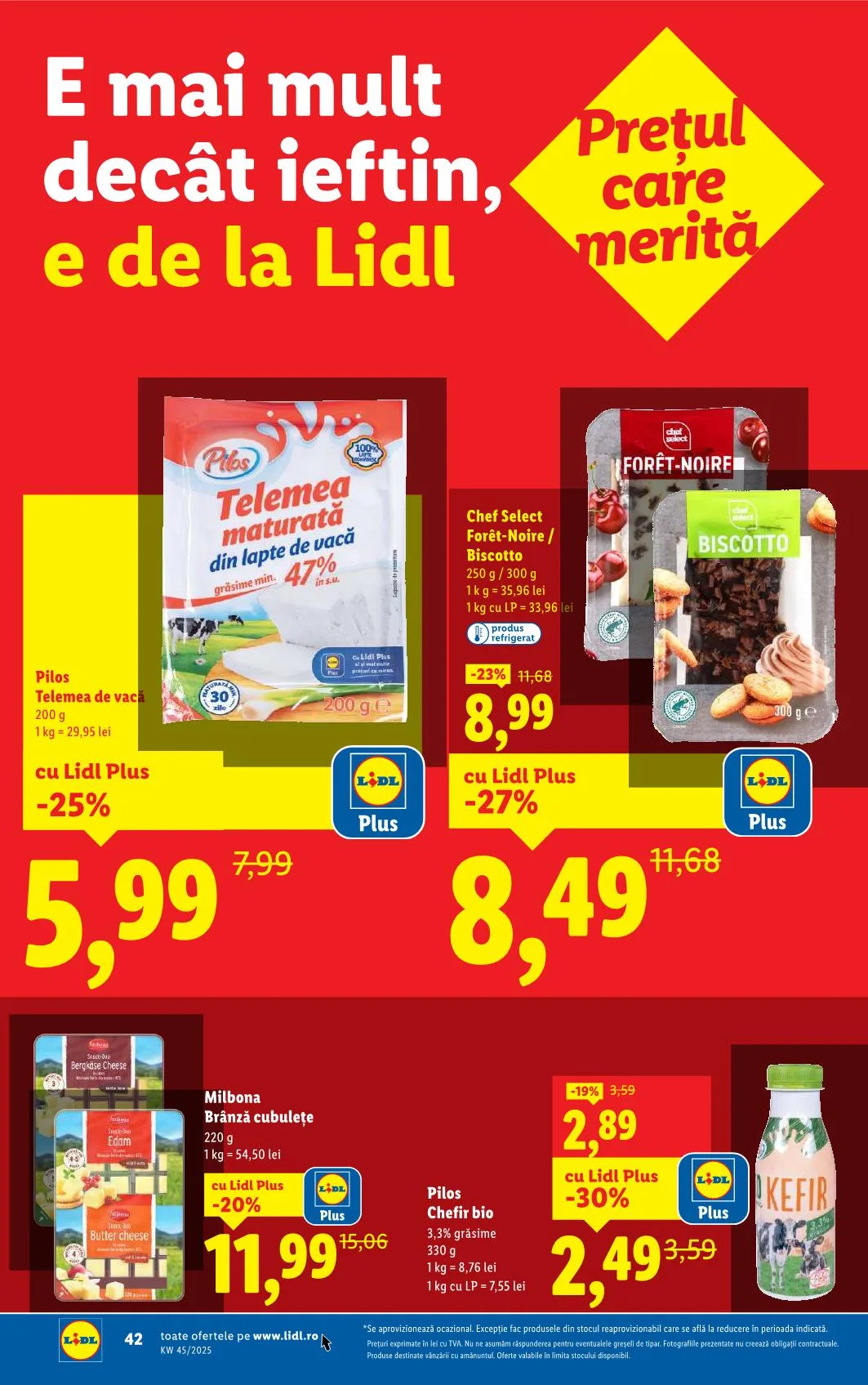 1 kg = 63,11 lei; 1 kg Lidl Plus = 57,84 lei