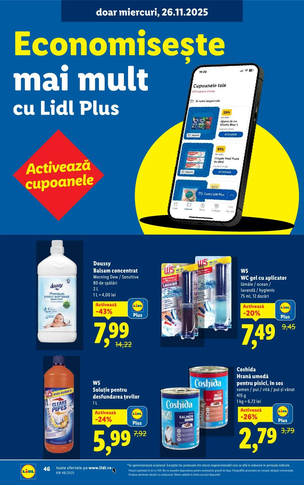 Campania se desfășoară în perioada 24.11-14.12.2025, în aplicația Lidl Plus, în limita stocului de produse disponibil în fiecare magazin.