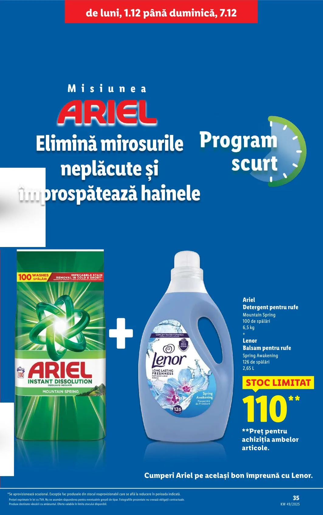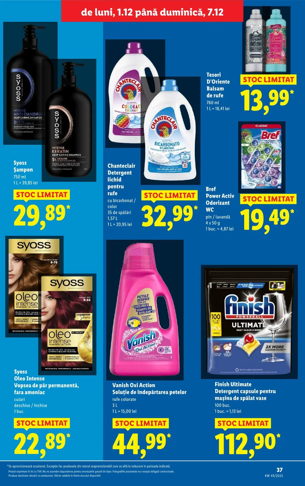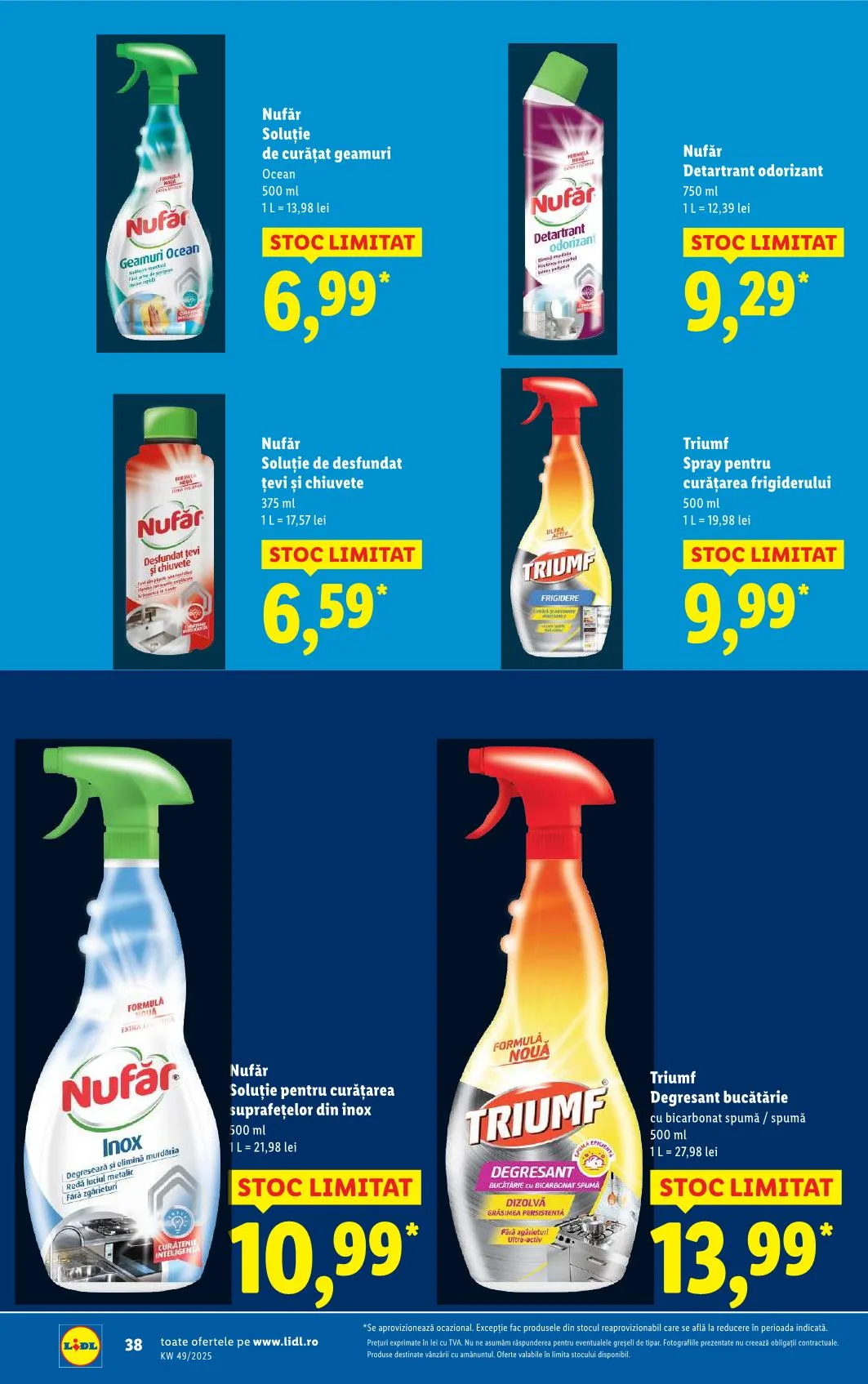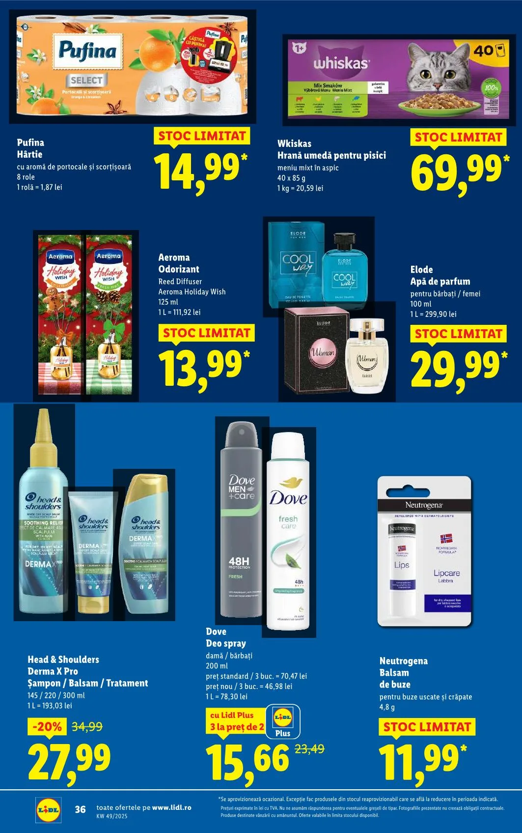 *Se aprovizionează ocazional. Excepție fac produsele din stocul reaprovizionabil care se află la reducere în perioada indicată. Prețuri exprimate în lei cu TVA. Nu ne asumăm răspunderea pentru eventualele greșeli de tipar. Fotografiile prezentate nu creează obligații contractuale. Produse destinate vânzării cu amănuntul. Oferte valabile în limita stocului disponibil.