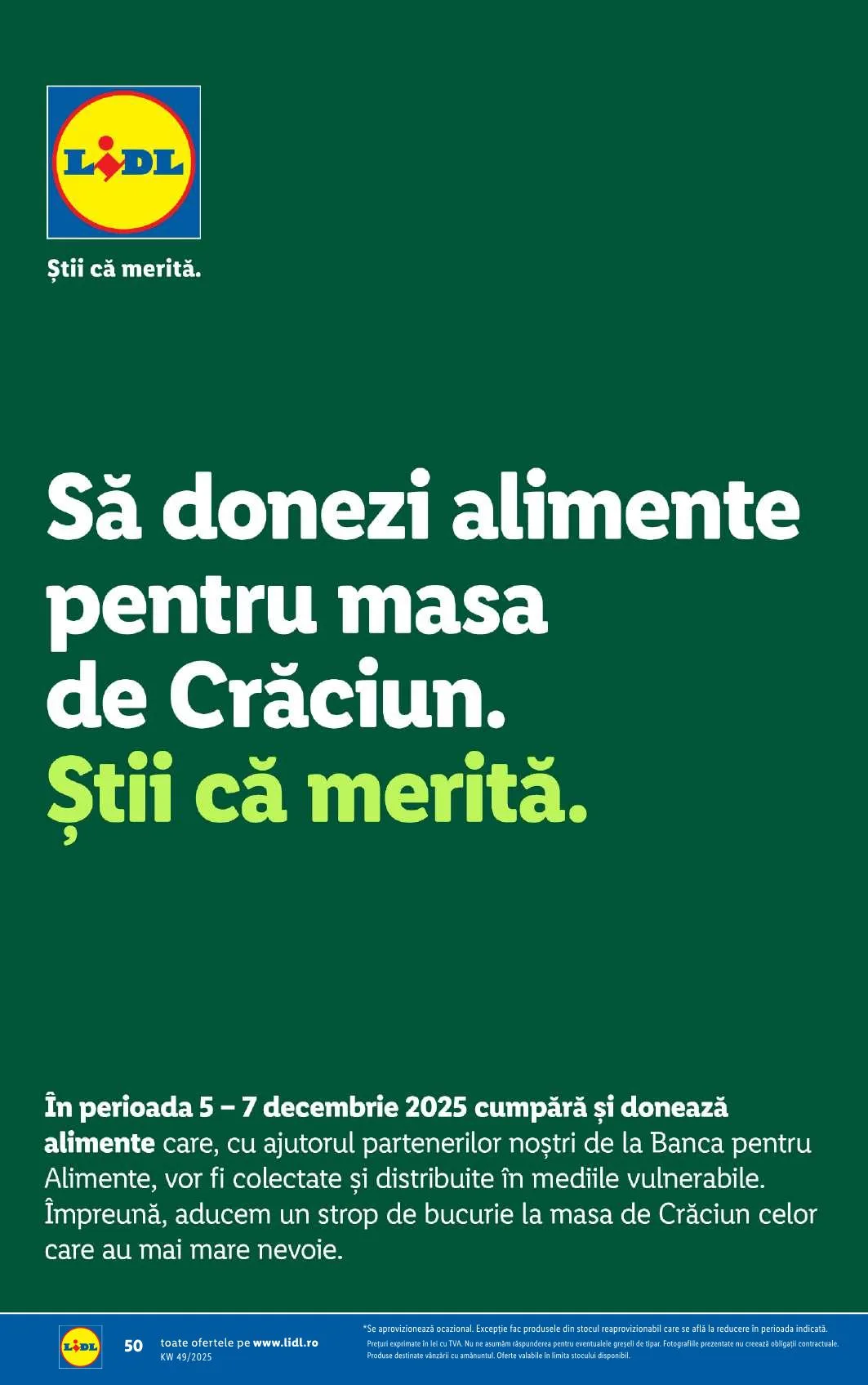 În perioada 5-7 decembrie 2025 cumpără şi donează alimente care, cu ajutorul partenerilor noştri de la Banca pentru Alimente, vor fi colectate şi distribuite în mediile vulnerabile.