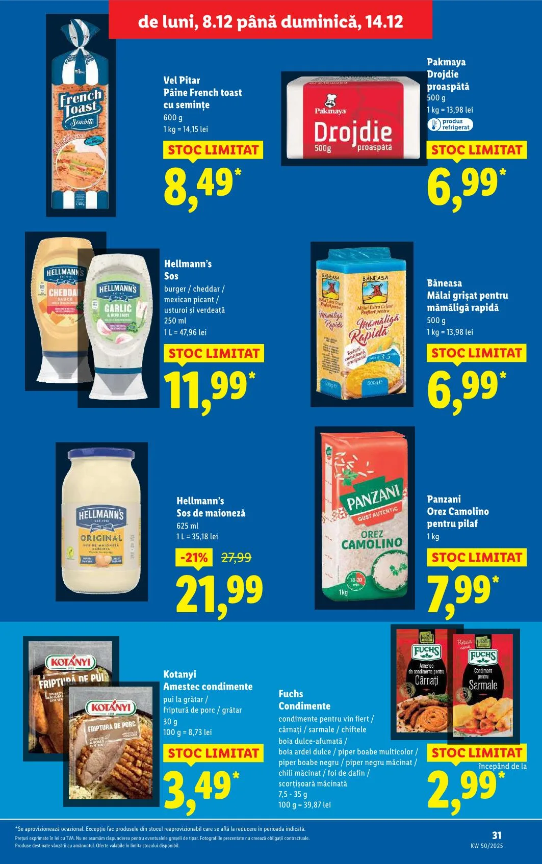 - Carne tocată (din piept și pulpă de pui, 500 g) – 12,21 9,99 lei (1 kg = 19,98 lei, -18%)
