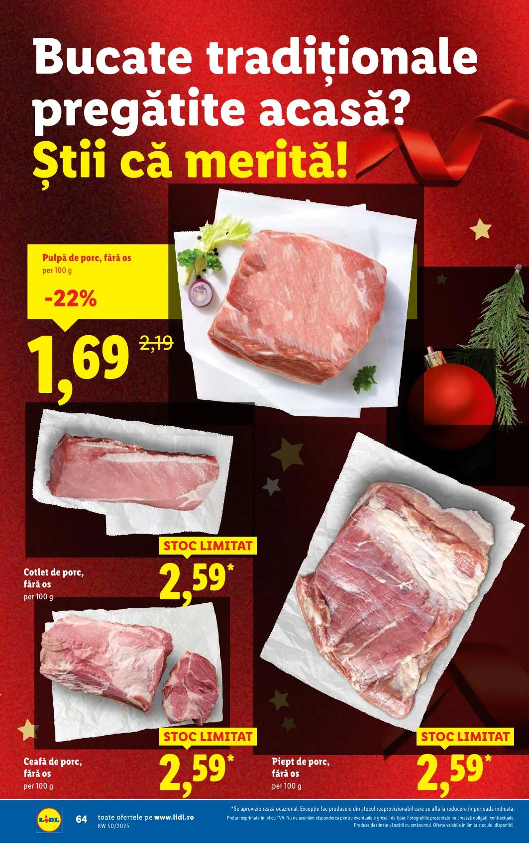 2,19 RON - Cotlet de porc, fără os – 100 g: 2,59 RON (STOC LIMITAT)