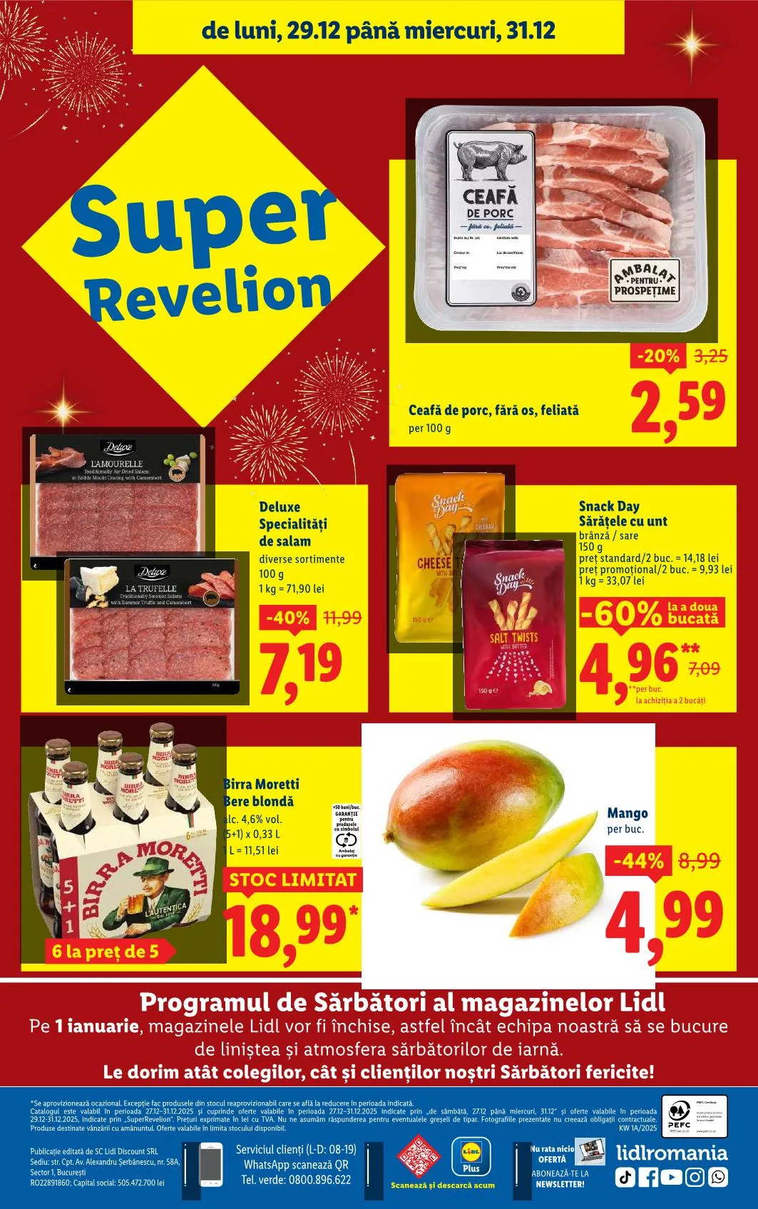 Programul de Sărbători al magazinelor Lidl: Pe 1 ianuarie, magazinele Lidl vor fi închise, astfel încât echipa noastră să se bucure de liniștea și atmosfera sărbătorilor de iarnă. Le dorim atât colegilor, cât și clienților noștri Sărbători fericite!