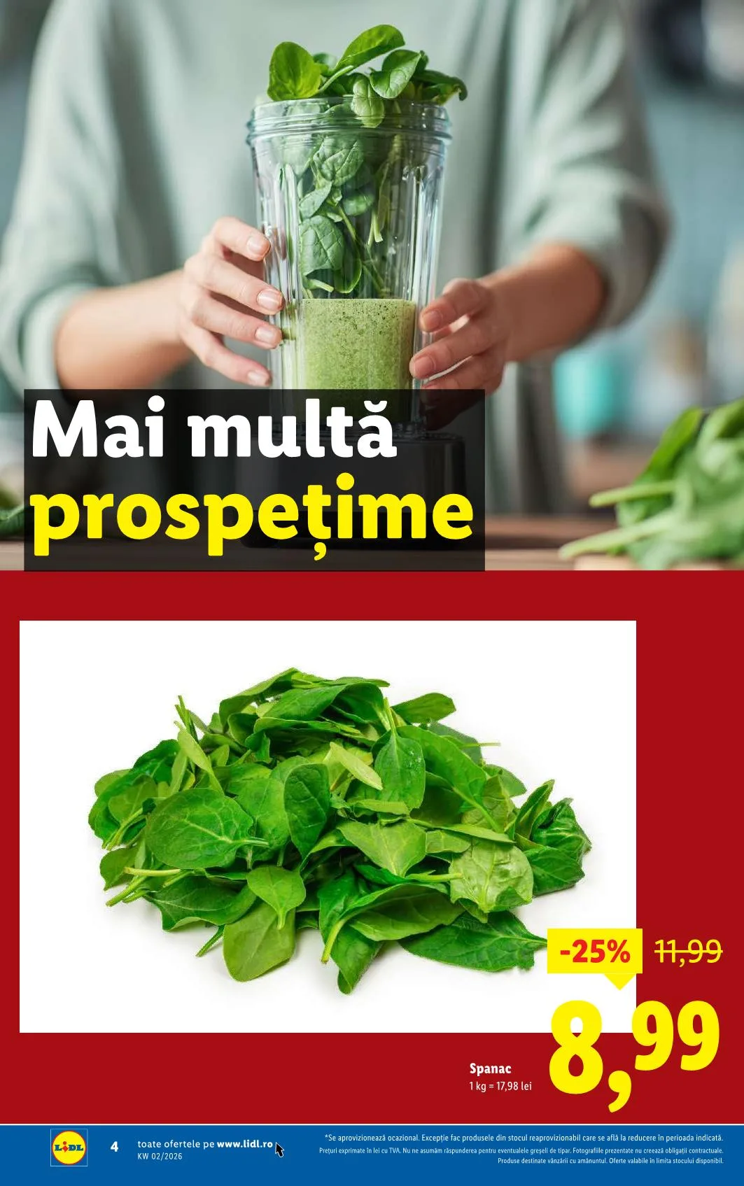 LIDL Plus: 6,49 lei (27% kedvezmény) - Spanac: 1 kg = 17,98 lei