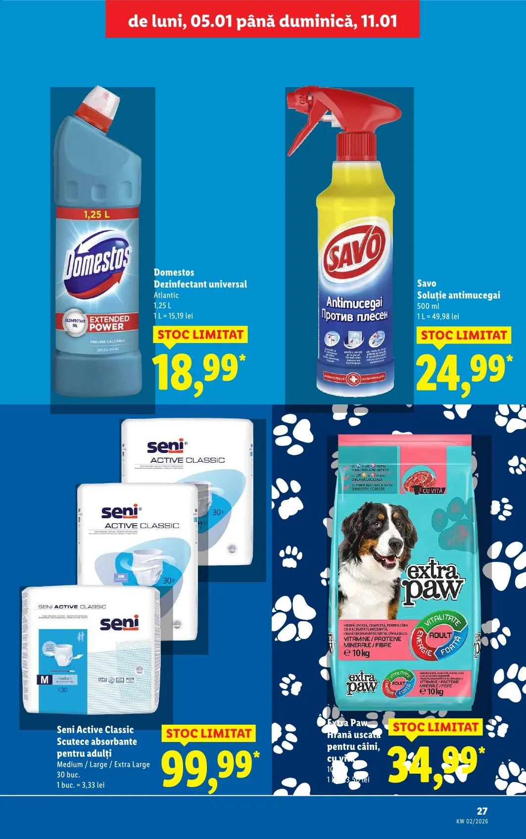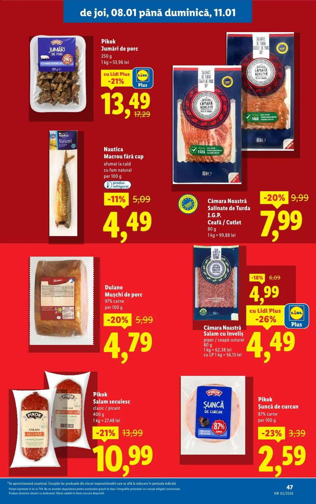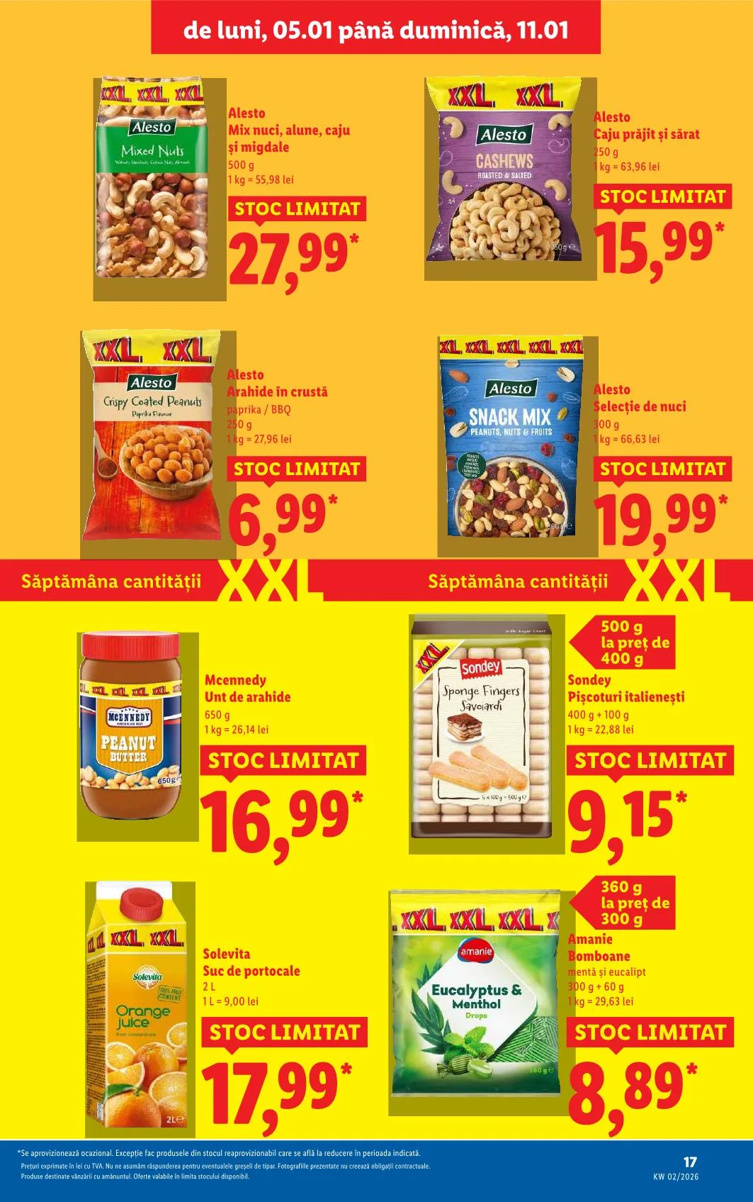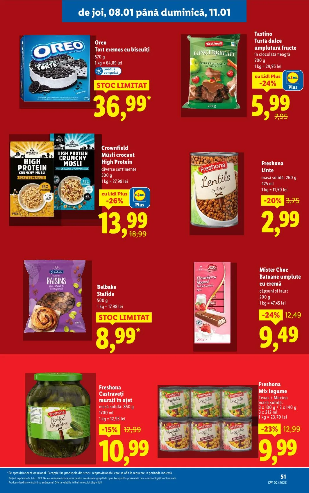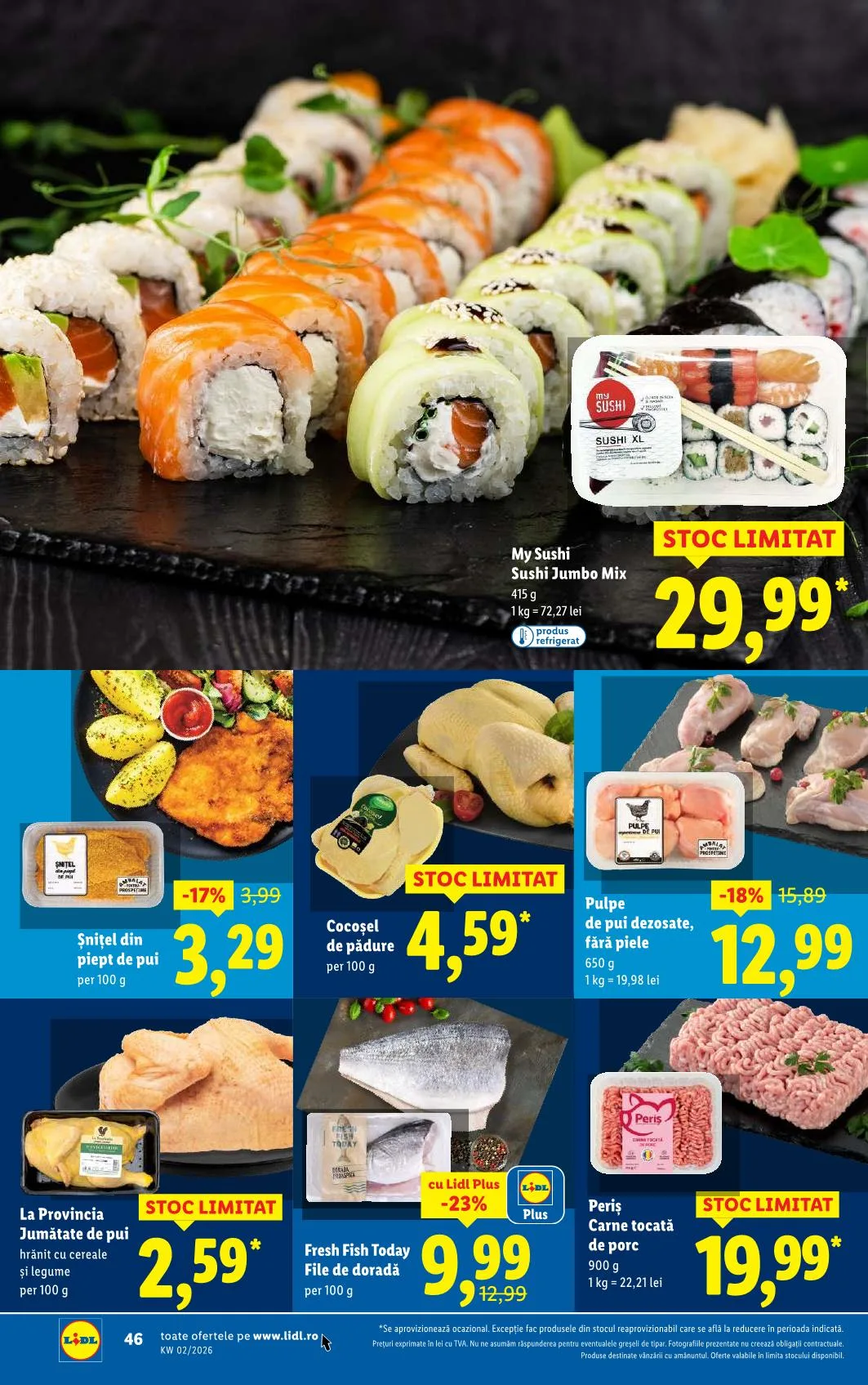 *Se aprovizionează ocazional. Kivételt képeznek a készletről újratöltött termékek, amelyek a megadott időszakban kedvezményes áron találhatók.