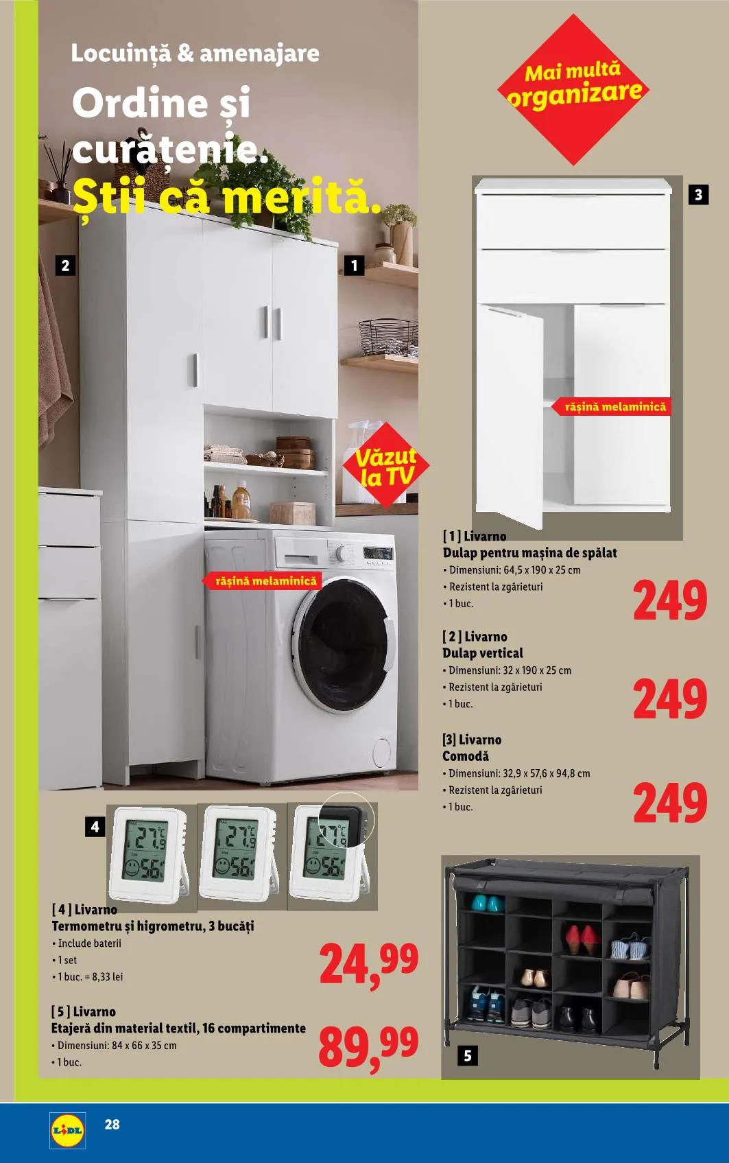- Livarno – Dulap pentru mașina de spălat • Dimensiuni: 64,5 x 190 x 25 cm • 1 buc. 249 lei