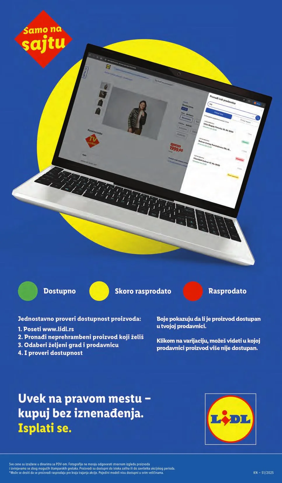 Proizvodi su dostupni do isteka zaliha ili do završetka akcijskog perioda. Može se desiti da se proizvodi rasprodaju pre kraja trajanja akcije. Pojedini modeli nisu dostupni u svim veličinama.