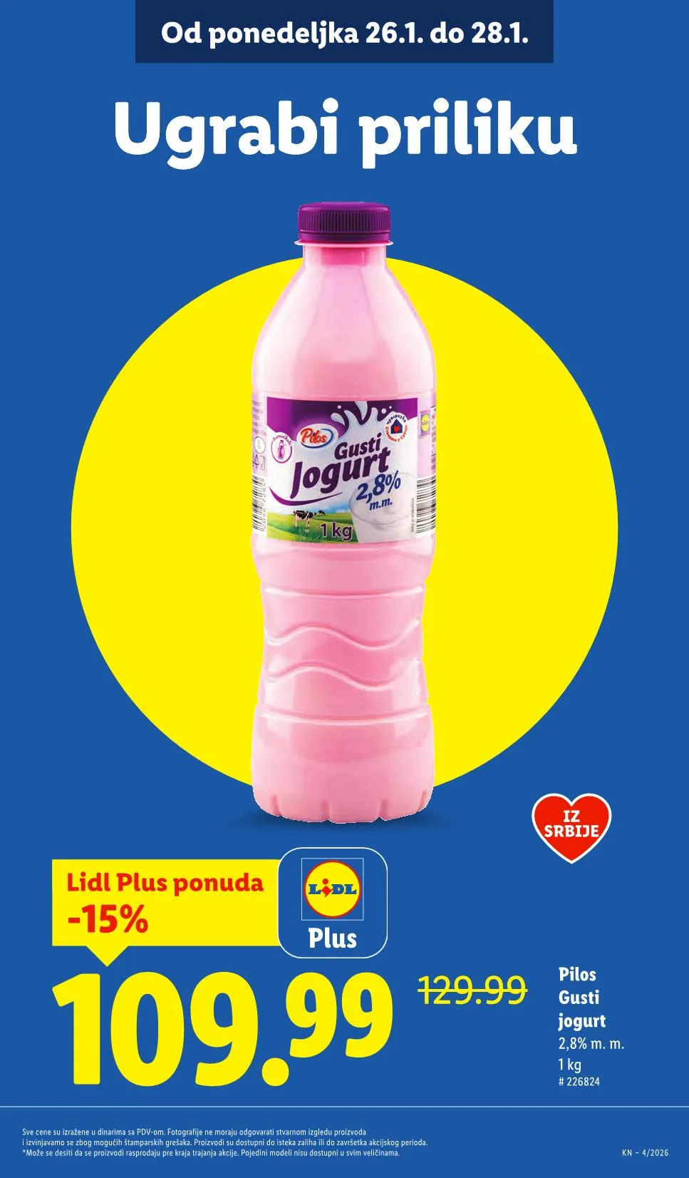 - Pilos joghurt 1 kg (2,8% zsírtartalom) – 109,99 dinár (-15%)