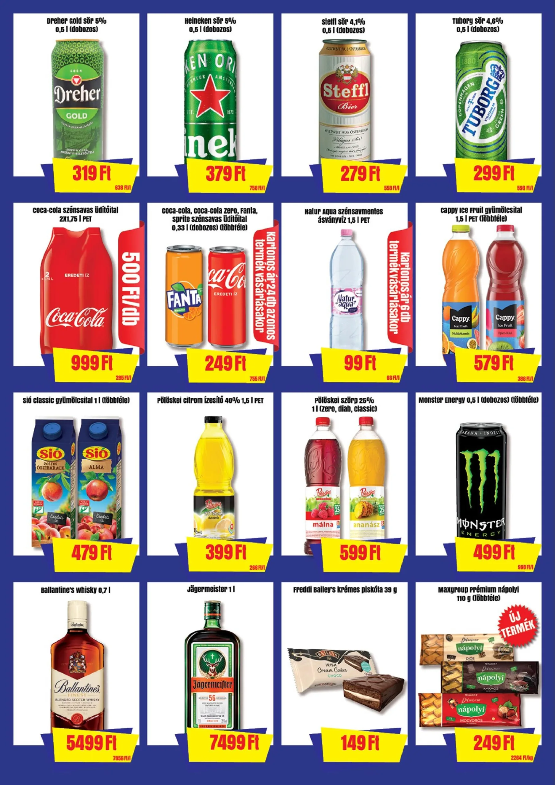 - Coca-Cola, Coca-Cola Zero, Fanta, Sprite szénsavas üdítőital (többféle) – 0,33 l (dobozos) – 249 Ft