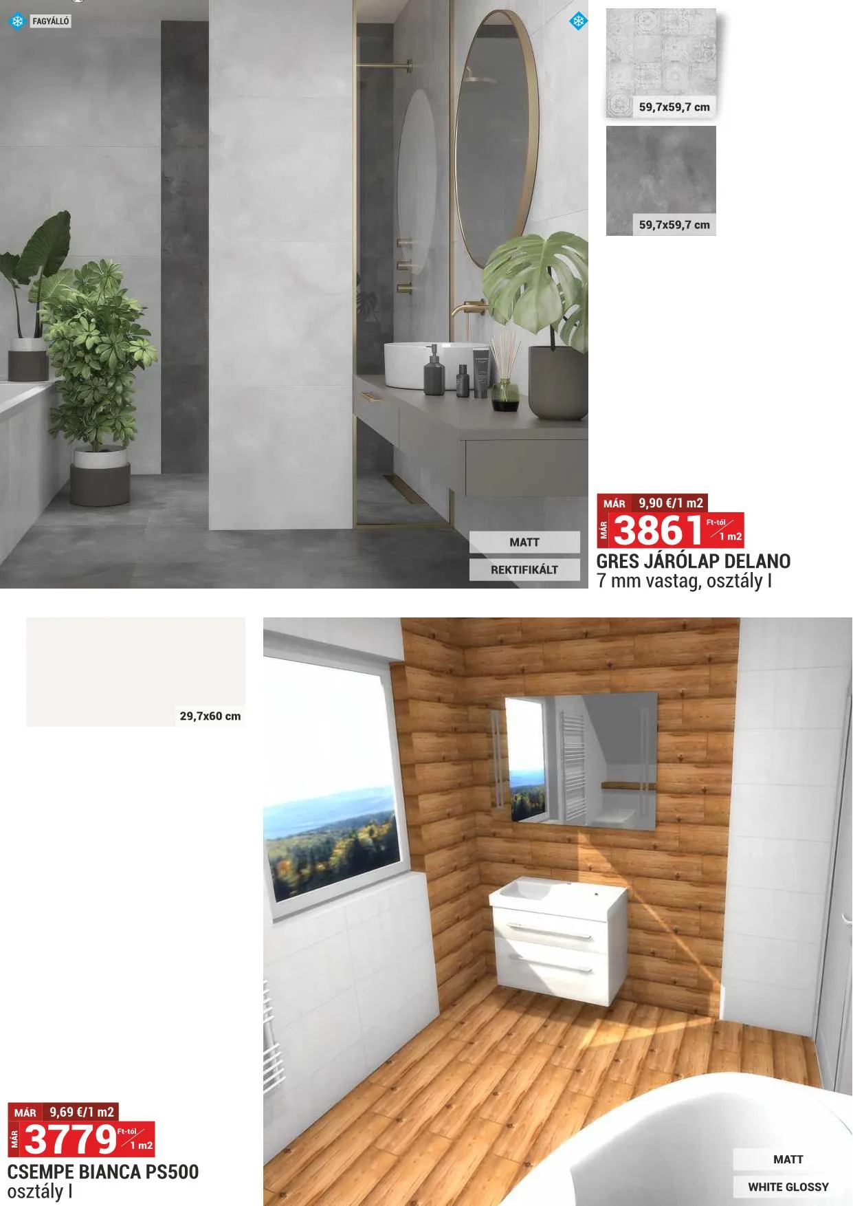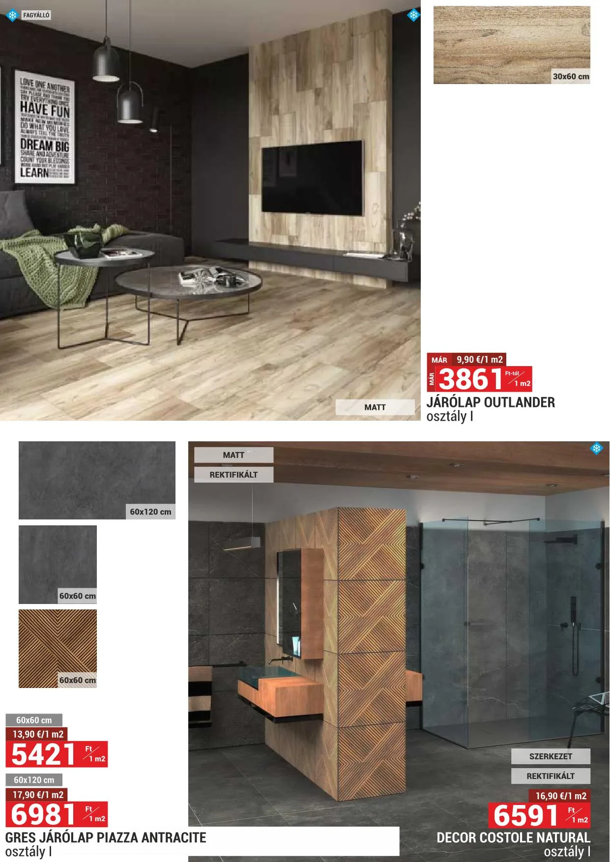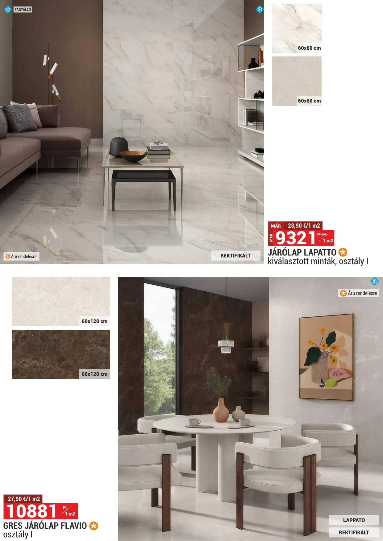 A termékek ára 3861 Ft-tól, 5421 Ft-ig terjed, 6981 Ft/m2 árakkal.