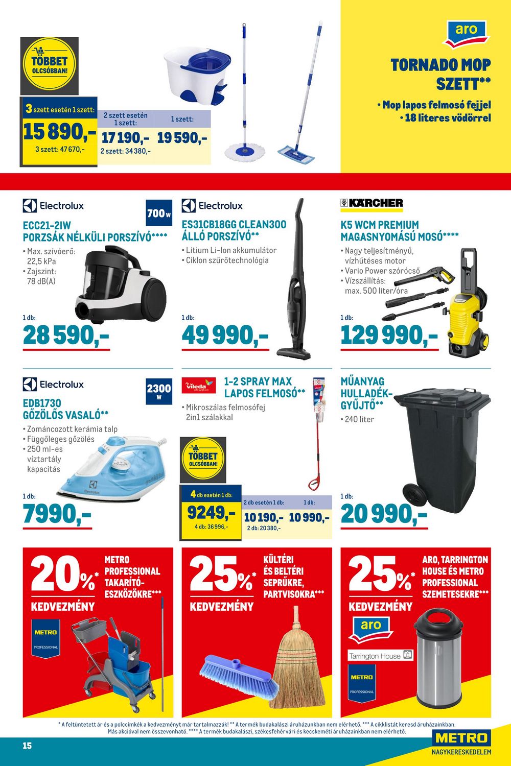 -1 ТОВВЕТ OLCSÓBBAN! 3 szett esetén 1 szett: 15 890,- 3 szett: 47670,- Electrolux • Max. szívóerő: 22,5 kPa ECC21-21W PORZSÁK NÉLKÜLI PORSZÍVÓ**** •Zajszint: 78 dB(A) 1 db: 28 590,- Electrolux EDB1730 GŐZÖLŐS VASALÓ** 1 db: • Zománcozott kerámia talp • Függőleges gőzölés • 250 ml-es víztartály kapacitás 15 2 szett esetén 1 szett: 1 szett: 17190,- 19 590,- 2 szett: 34380,- 7990,- O 20%* KEDVEZMÉNY METRO PROFESSIONAL 700w METRO PROFESSIONAL ESZKÖZÖKRE*** %TAKARÍTÓ- 2300 Electrolux ES31CB18GG CLEAN300 ÁLLÓ PORSZÍVÓ** . Lítium Li-Ion akkumulátor • Ciklon szűrőtechnológia 1 db: 49 990,- Vileda 1-2 SPRAY MAX LAPOS FELMOSÓ** • Mikroszálas felmosófej 2in1 szálakkal -W ТОВВЕТ OLCSÓBBAN! KÜLTÉRI ÉS BELTÉRI %SEPRÚKRE, 25% KEDVEZMÉNY PARTVISOKRA*** TORNADO MOP SZETT** KÄRCHER K5 WCM PREMIUM MAGASNYOMÁSÚ MOSÓ**** • Nagy teljesítményű, vízhűtéses motor • Mop lapos felmosó fejjel • 18 literes vödörrel • Vario Power szórócső • Vízszállítás: max. 500 liter/óra 4 db esetén 1 db: 1 db: 2 db esetén 1 db: 1 db: 9249,- 10190,- 10 990,- 20 990,- 4 db: 36996,- 2 db: 20380,- 1 db: 129 990,- MŰANYAG HULLADÉK- GYŰJTŐ** .240 liter METRO 25%* KEDVEZMÉNY aro PROFESSIONAL aro Tarrington House m 14 ARO, TARRINGTON HOUSE ÉS METRO %PROFESSIONAL SZEMETESEKRE*** *A feltüntetett ár és a polccímkék a kedvezményt már tartalmazzák!** A termék budakalászi áruházunkban nem elérhető. *** A cikklistát keresd áruházainkban. Más akcióval nem összevonható. **** A termék budakalászi, székesfehérvári és kecskeméti áruházainkban nem elérhető. METRO NAGYKERESKEDELEM