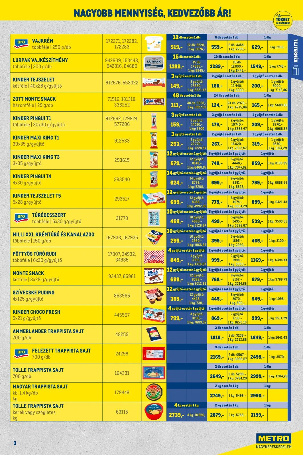 - Aro Kefir: 16 db: 4464,-, 1 kg: 558,-